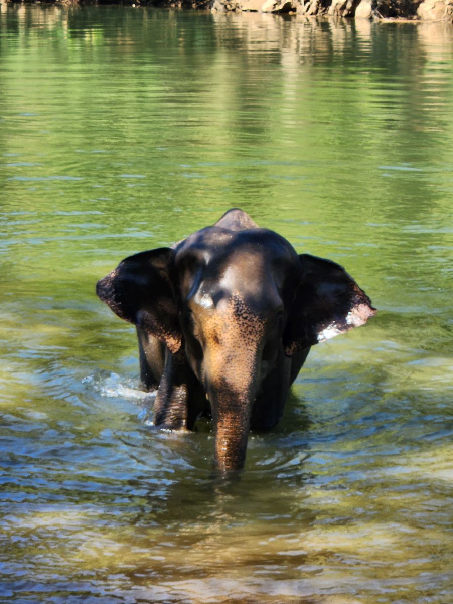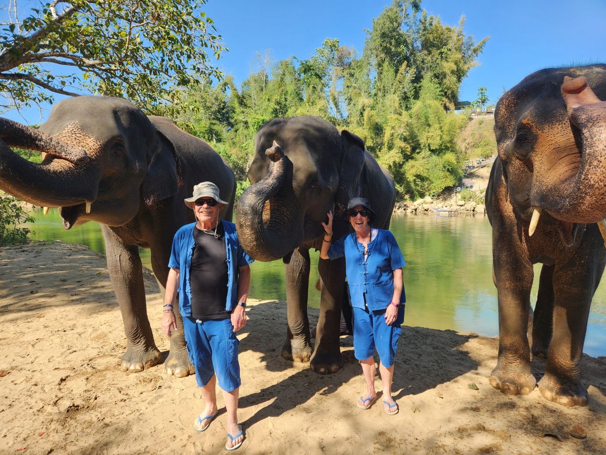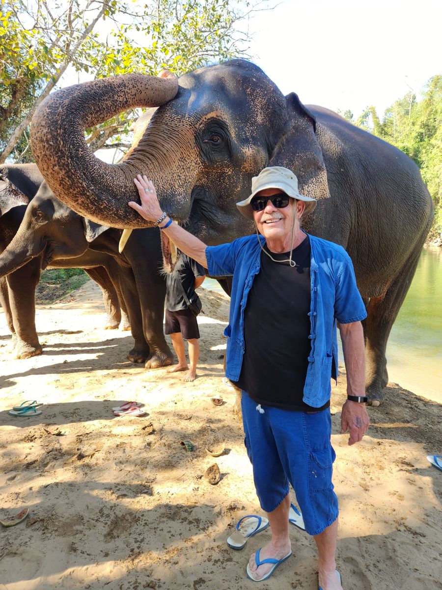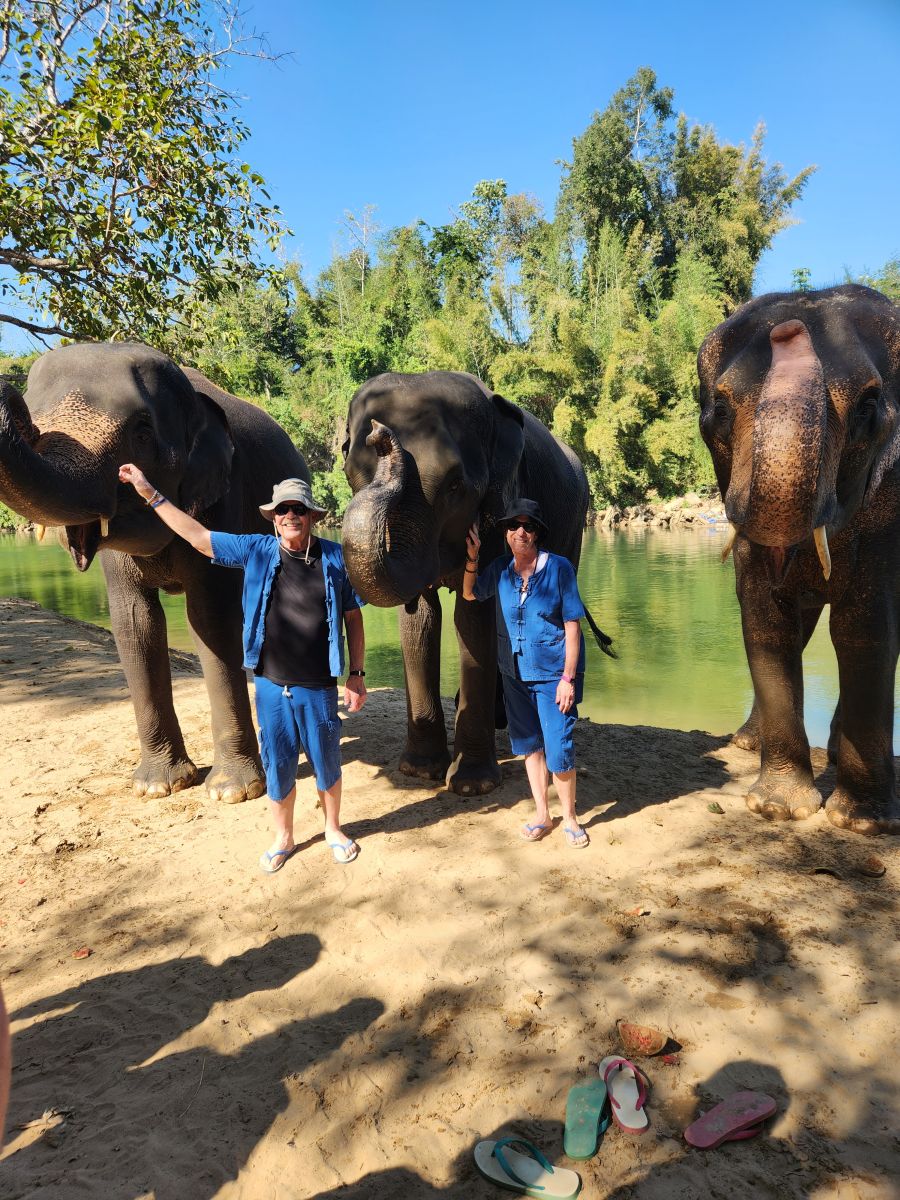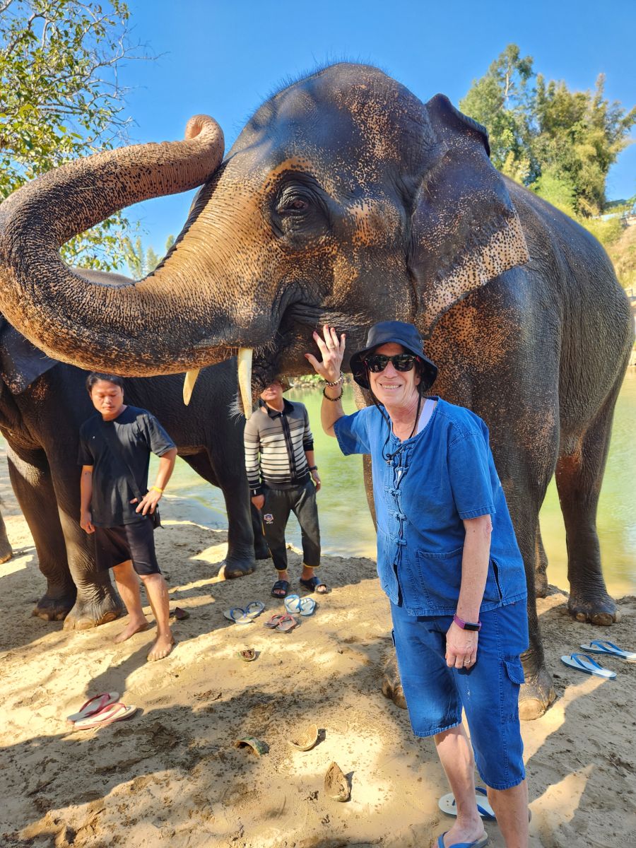 In a final water activity, the Mahouts get one of the elephants to completely submerge itself. So incredible to watch! Then it is picture time! Now we can get into the act – relatively dry and unscathed, but always ready for our cue to hang out with the elephants and snap pictures!