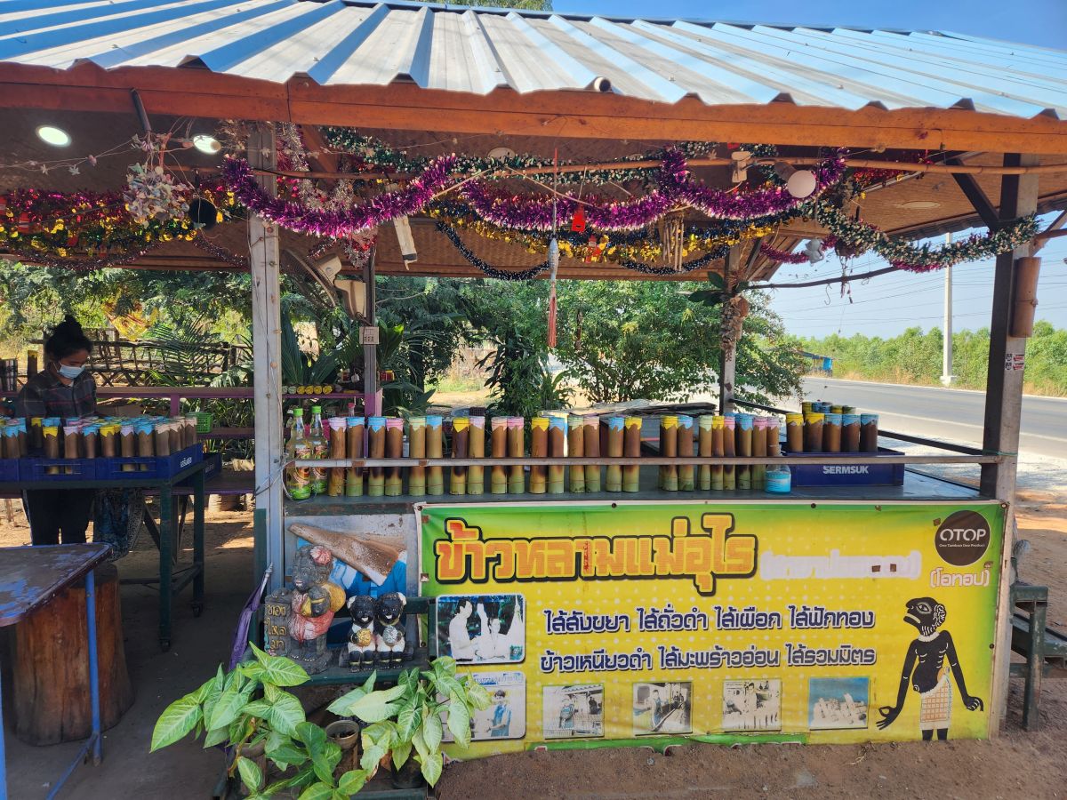 Trespassing done. We’re back on the bus and headed to our next surprise stop: The sticky rice stall. But in between we learn all about the birth rate in Thailand, the Buddhist thoughts about contraceptives and abortion (pretty much don’t think about contraceptives and abortion is a sin); how Cabbages and Condoms came into being, the push to start family planning because farmer’s were so poor and couldn’t afford more kids. Good thing. Bad thing. The population has slowed, but at least it didn’t boom and overpopulate. Fascinating.