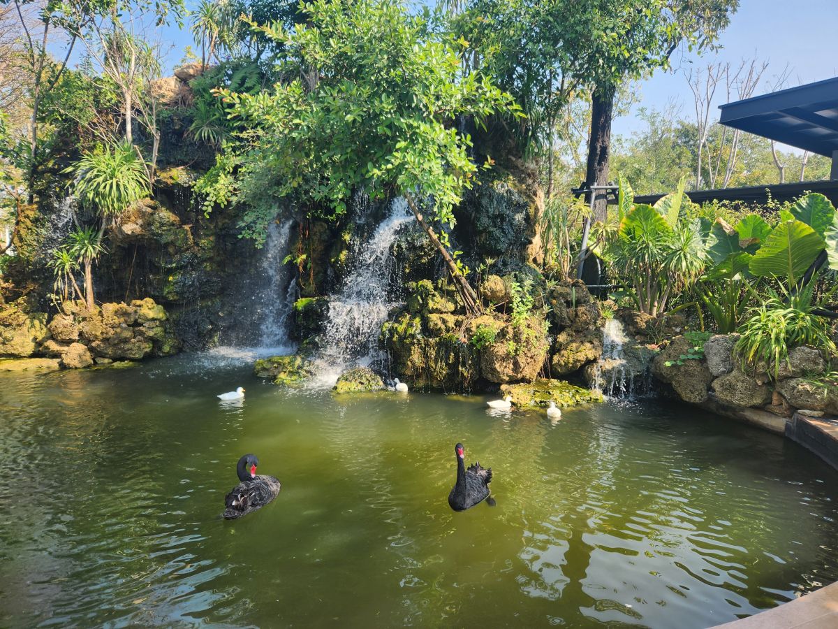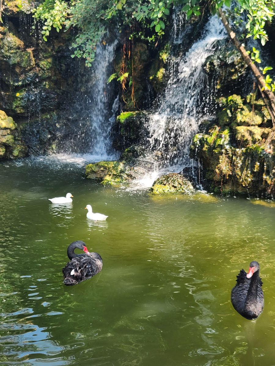 That was an excellent stop!!! Half an hour later we stop at a “real” rest stop for the restrooms. The place is amazingly gorgeous with a beautiful lake and waterfall and ducks and geese. Oh, and spotless toilets. That always counts! there is also a coffee shop there where we order large cappuccino, paying extra to get “large,” only to find that large just means a large cup! The cappuccino is the regular size. Too funny.