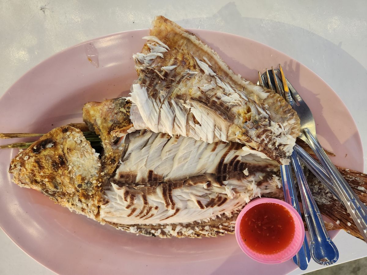Later, at dinner time, we ventured out perusing the street food offerings. The Central Marina food park was like an upscale night market! Actually, it was all about the same, just the setting seemed more upscale – in front of a mall/market on nicely paved cobblestone plazas. The food offerings were the same, if not a little more expensive, and the table set up exactly the same. We decided to go ahead and get at least a crippy fish here – because they looked so fabulous. And they were – the guy grilling them was adorable and the fish was one of the best we’d had. That along with beers from the beer stall and the twinkling lights, and we were happy with our first course.