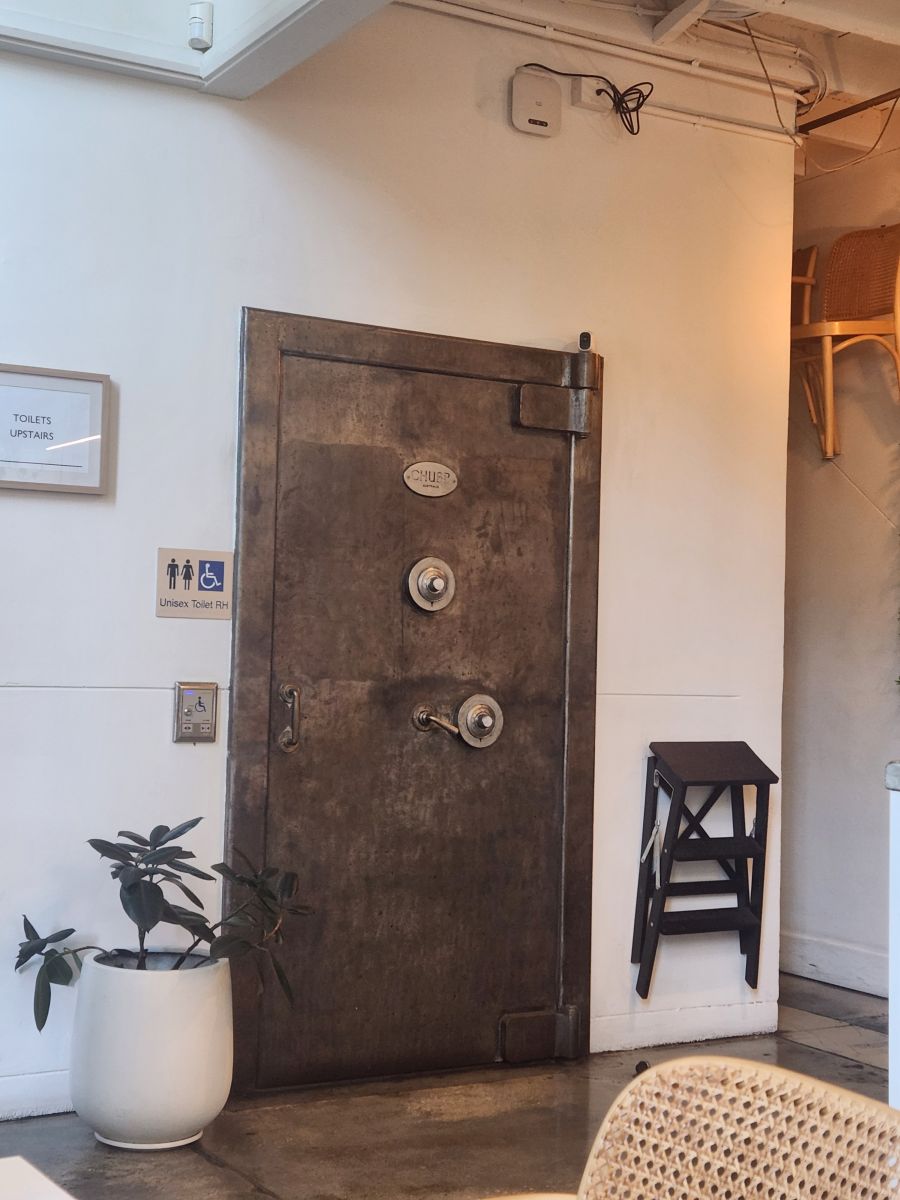 Up an at’em early, we meet Rosanna and Peter at their hotel and wander through the city toward the Central Market. But first, a cappuccino and sweet treat at Crack. Yes, Crack. Very aptly named, because their sweets are addictive like Crack! We’re going to have to force ourselves not to come back here! Ever! But for today, it is wonderful to sit here and catch up more with our sweet AAC friends and share a last coffee and snack. The restaurant has a fabulous atmosphere, once an old bank building, the bathroom door is actually a vault door. How appropriate!