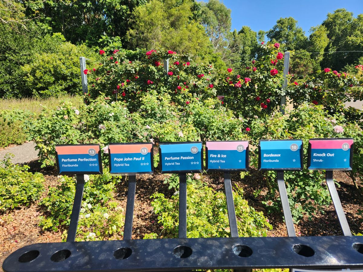 We spent a lovely few hours wandering the grounds, exploring the huge arboretum with palm trees and wood bridges above the canopy. But the best was the rose garden which had tons and tons of different roses with explanations and information about the fragrance of roses, how fragrance is an individual sense and the same rose will smell different to different people. Interesting!