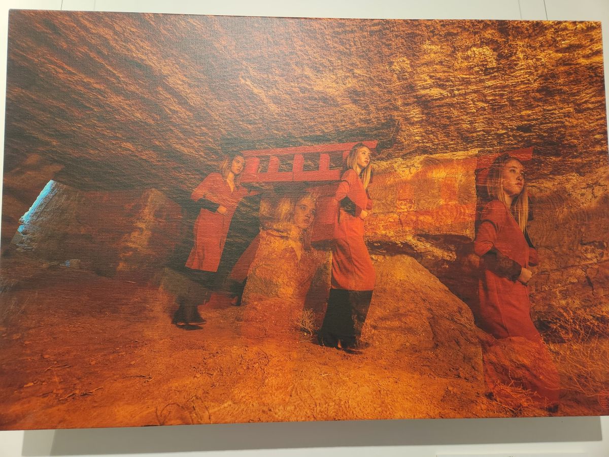 Also, in what I’ll call an outbuilding (I think it was part of a prison originally? I can’t recall), there was a fabulous exhibit on Japanese -Australian art, with a poignant story on twin sisters from Japan, but who had Australian roots. They came to Australia to explore their heritage, starting at their grandmother’s house, and then traveled all over Australia with a temple structure taking photos. The photos alone were fabulous, but the sad part comes in that one of the sisters was killed in a car accident in January of 2022. Just when they were starting to get some fame and become known for their work. Ever so sad.