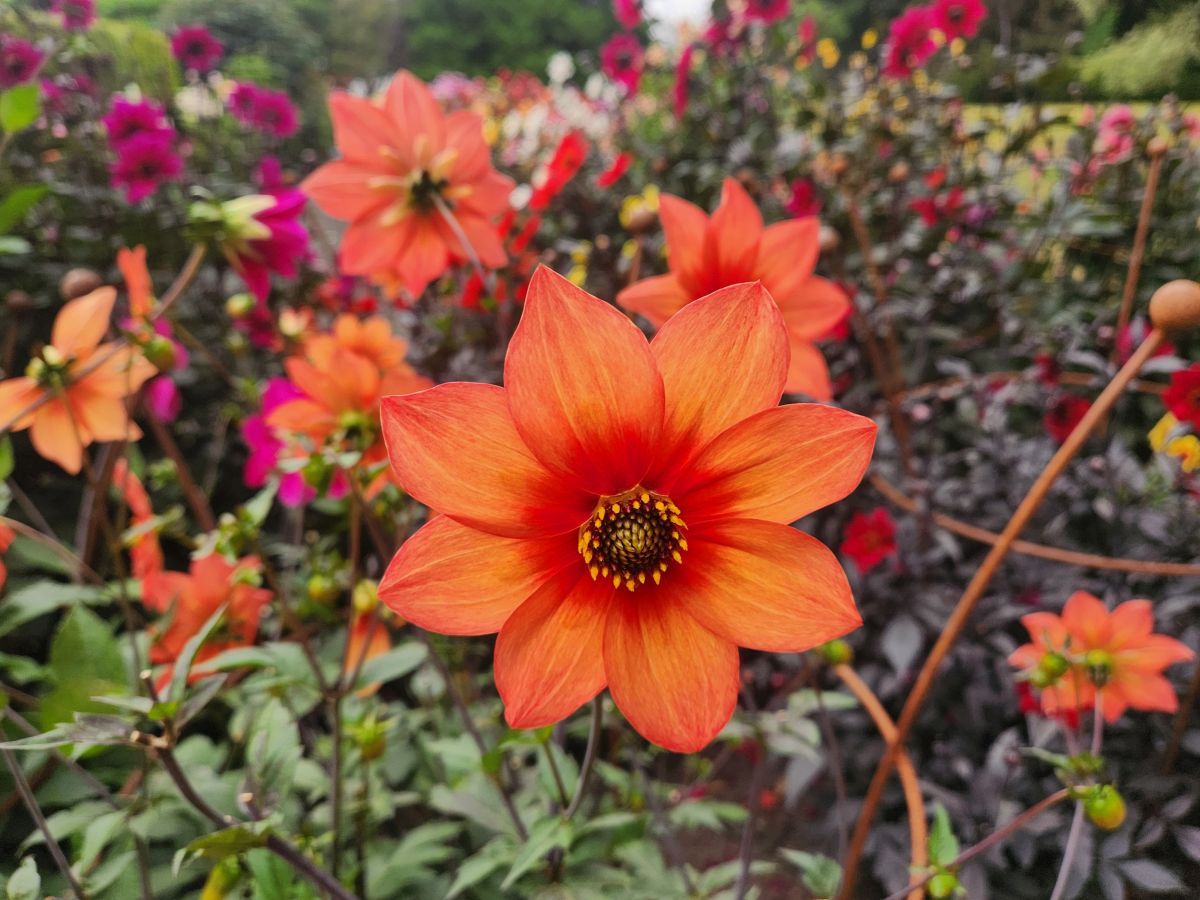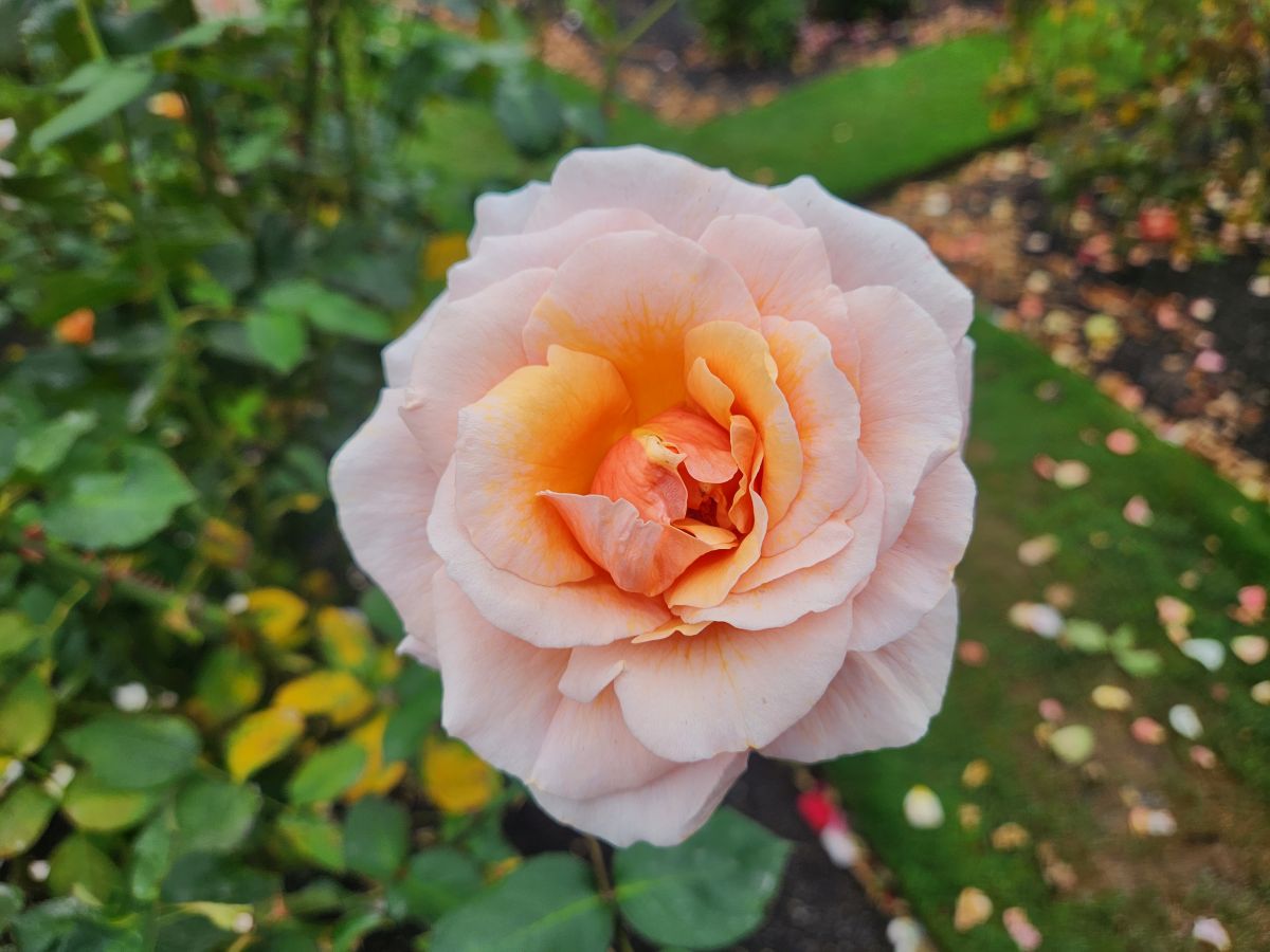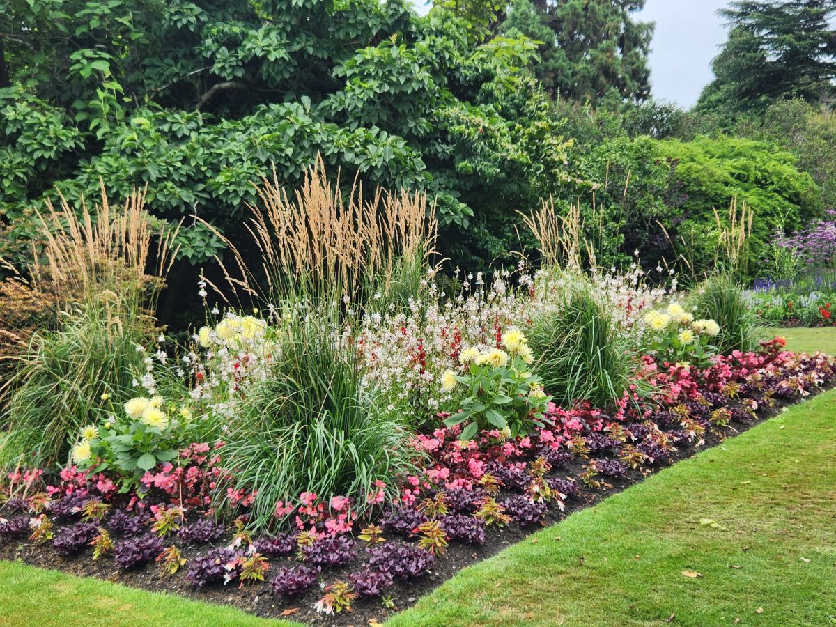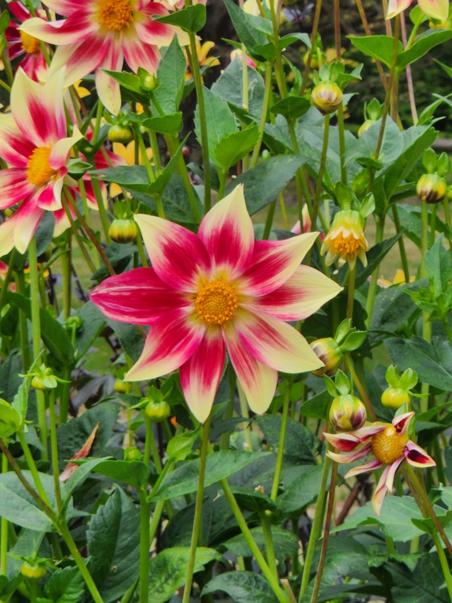 Next to the Bell are lovely zinnias and a wonderful rose garden, still very much in bloom. It is lovely to walk through all these flowering plants so late in the season (it is going on Fall here) and makes for a very pleasant morning. From the rose garden we spy the Garden café where we stop off for the restrooms, as well as a cappuccino and a flat white. We just figured out what flat whites are, and have decided to try them as they don’t have as much froth or whipped cream at the top and are supposed to have more espresso. The comparison is favorable – so we think we will now switch! And both coffees go quite well with the cream filled puff donut to which we succumbed.
