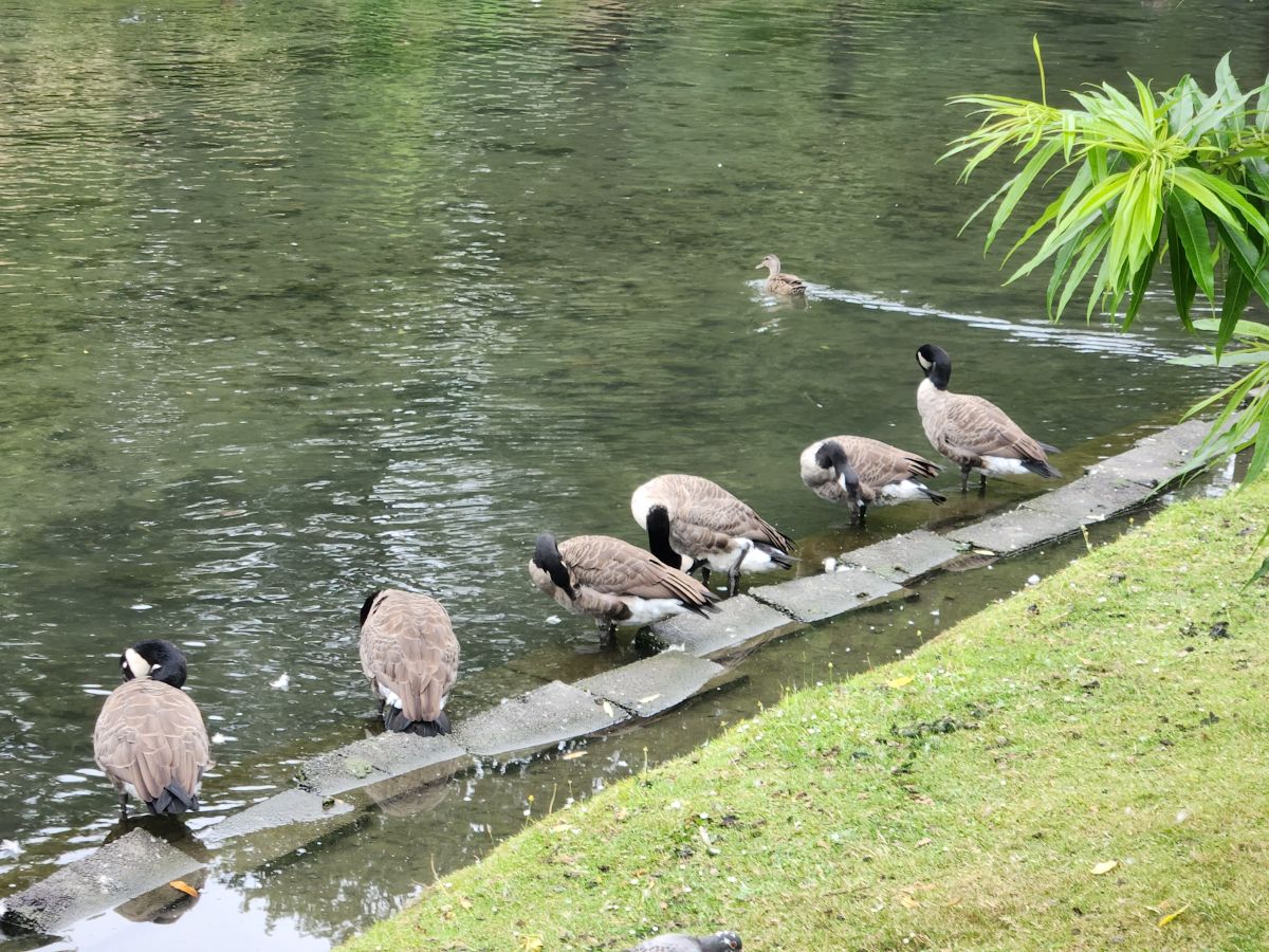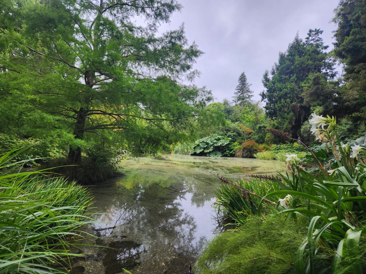 Out of the deafening racket, we circle the water garden, past the massive fig tree or whatever it is, eventually coming out of the park by following the Avon river into town.