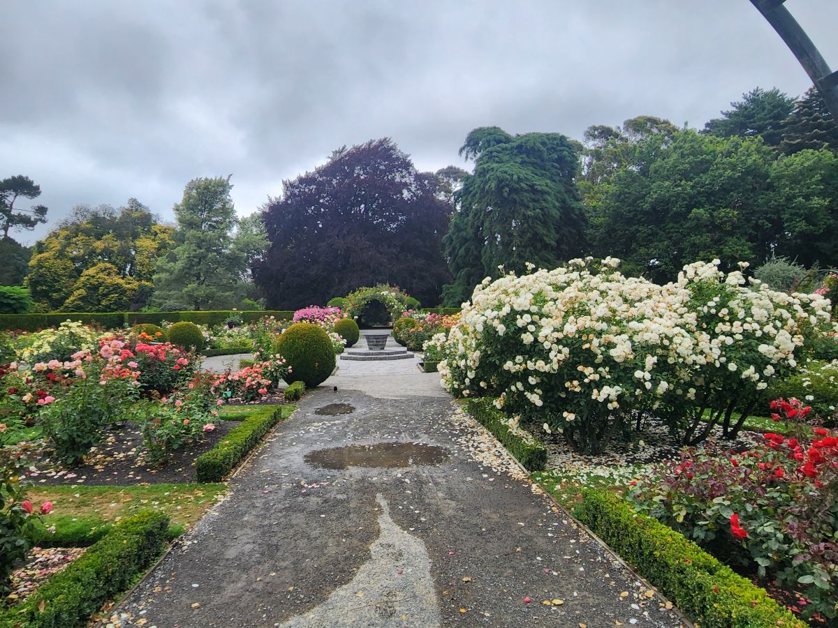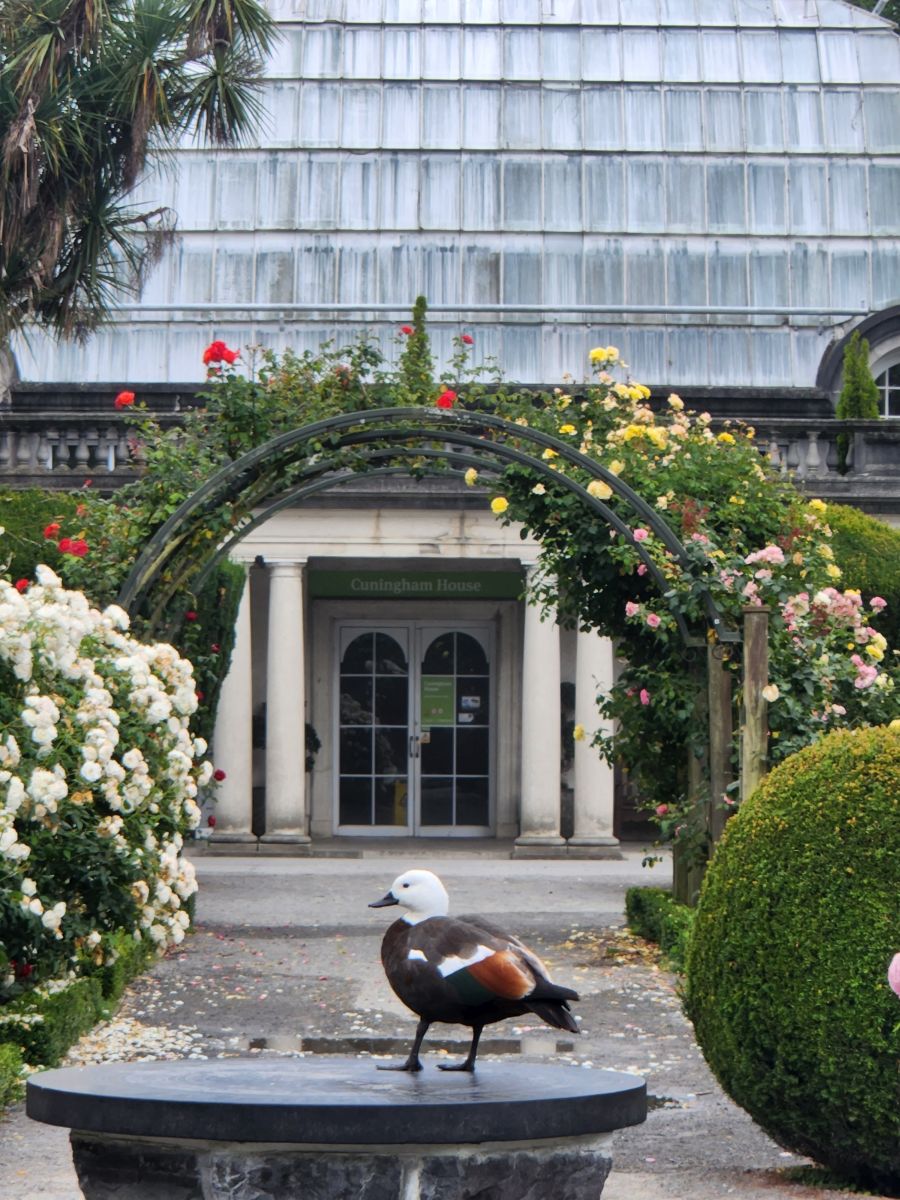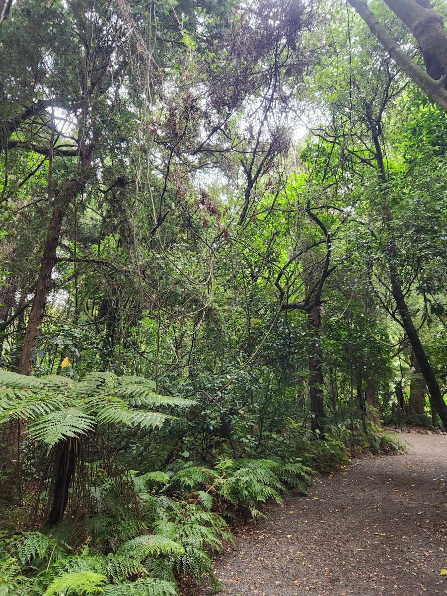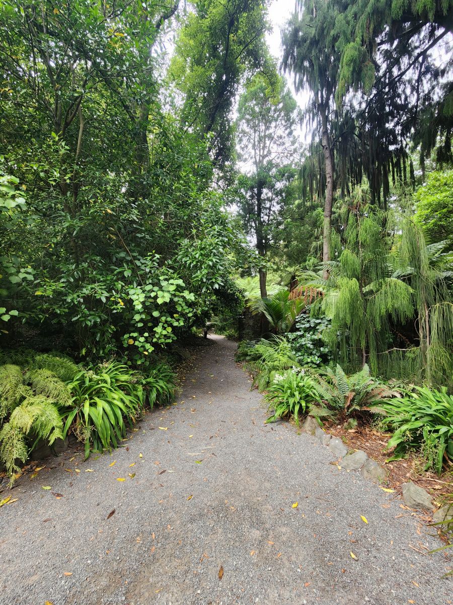 Back in the gardens, we traverse through the rose garden again, heading to the New Zealand plant area which is a mass of ferns and huge trees and draping plants and this weird flowering fern-like thing (again, will let your imagination tell you what it looks like!). While it looks so peaceful and serene, it is actually incredibly noisy in here! The insects – whether cicadas or whatever – are almost deafening. So much so, we just had to take videos so you could hear it also.