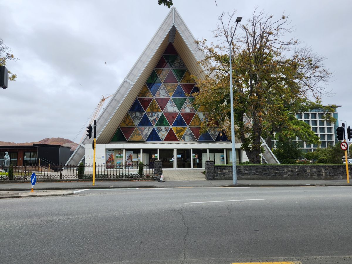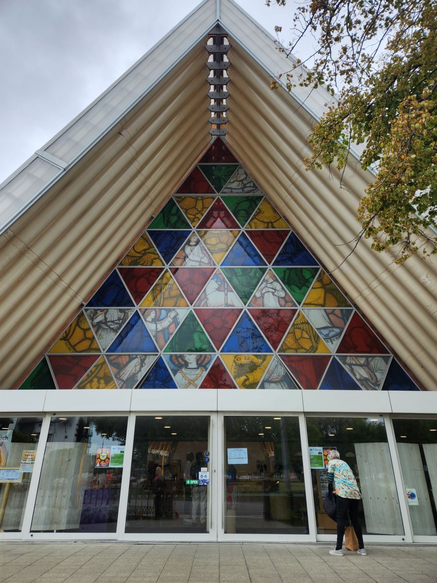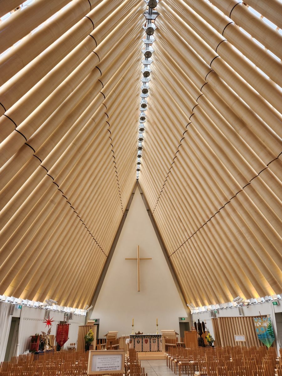 Making our way to the “transitional” cathedral, we passed some great street art and also the old tram station where they have a restaurant tram (only open for dinner). A few blocks later we were standing across form the transitional cathedral, which is built from cardboard. Seriously! Cardboard and wood and plexiglass (or something like that) roof! Crazy, but they could build it fast.