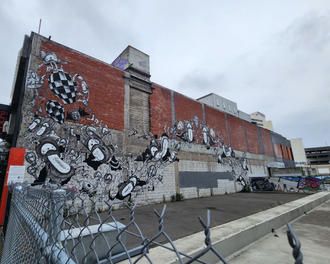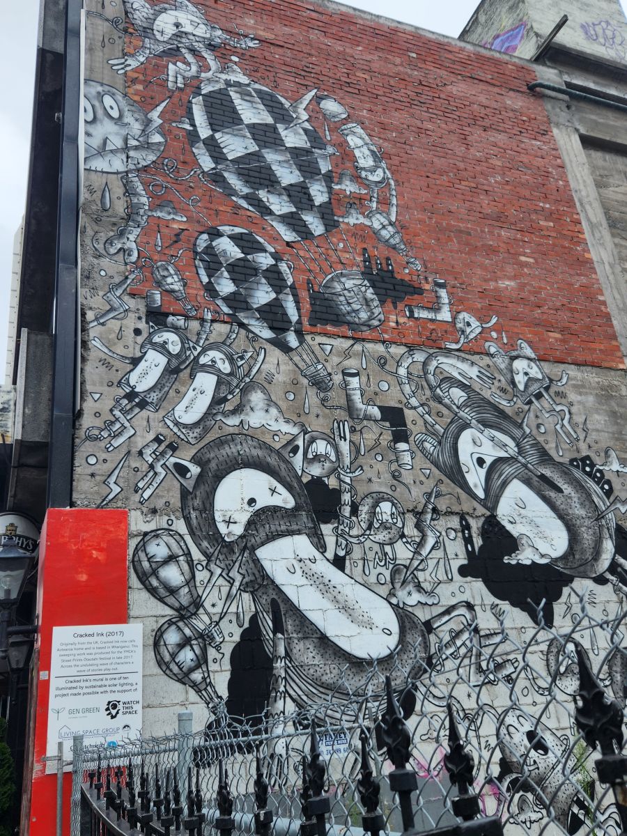 On our way back toward the center of town, we pass more excellent street art, including a set of stairs that were obviously left from some structure destroyed in the earthquake, and a fabulous old colonial style building, right up against a newer building that is still undergoing earthquake repairs. Then we find a pub for a drink and the bar manager is from Thailand! So you know we had a long chat and loved that.