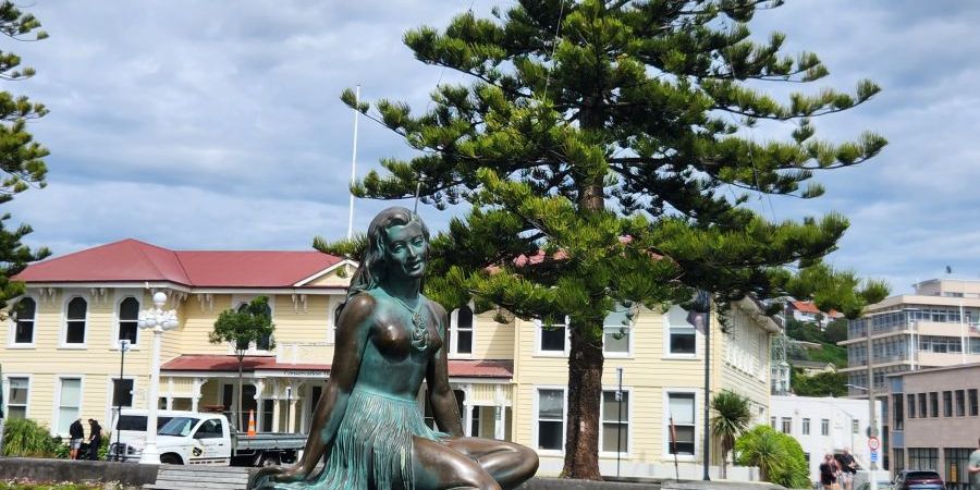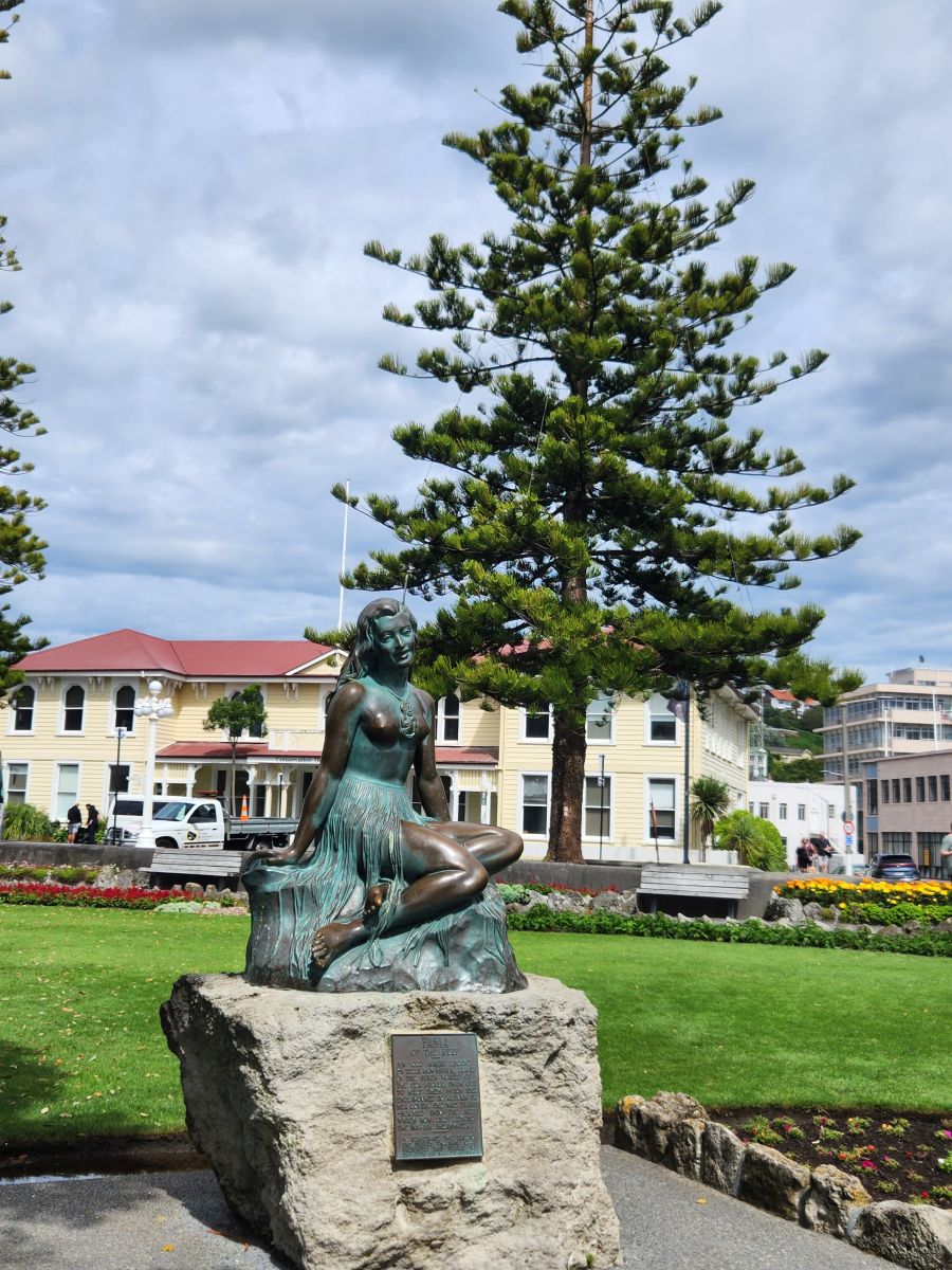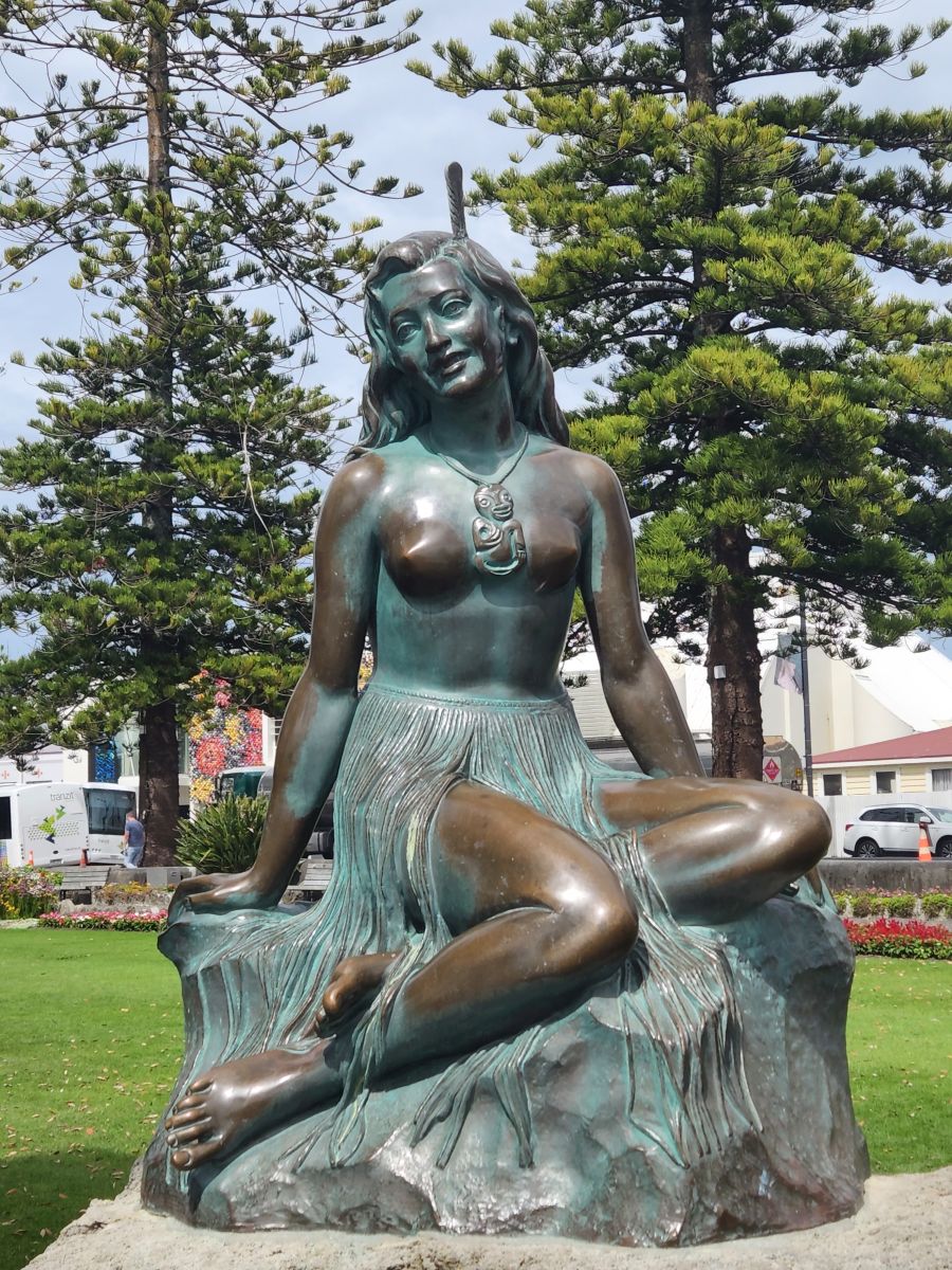 Outside in the lovely fresh air, we walked through the park again to see the Pania of the Reef, a celebrated woman who married a Maori chief.