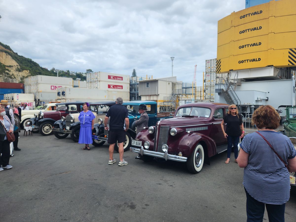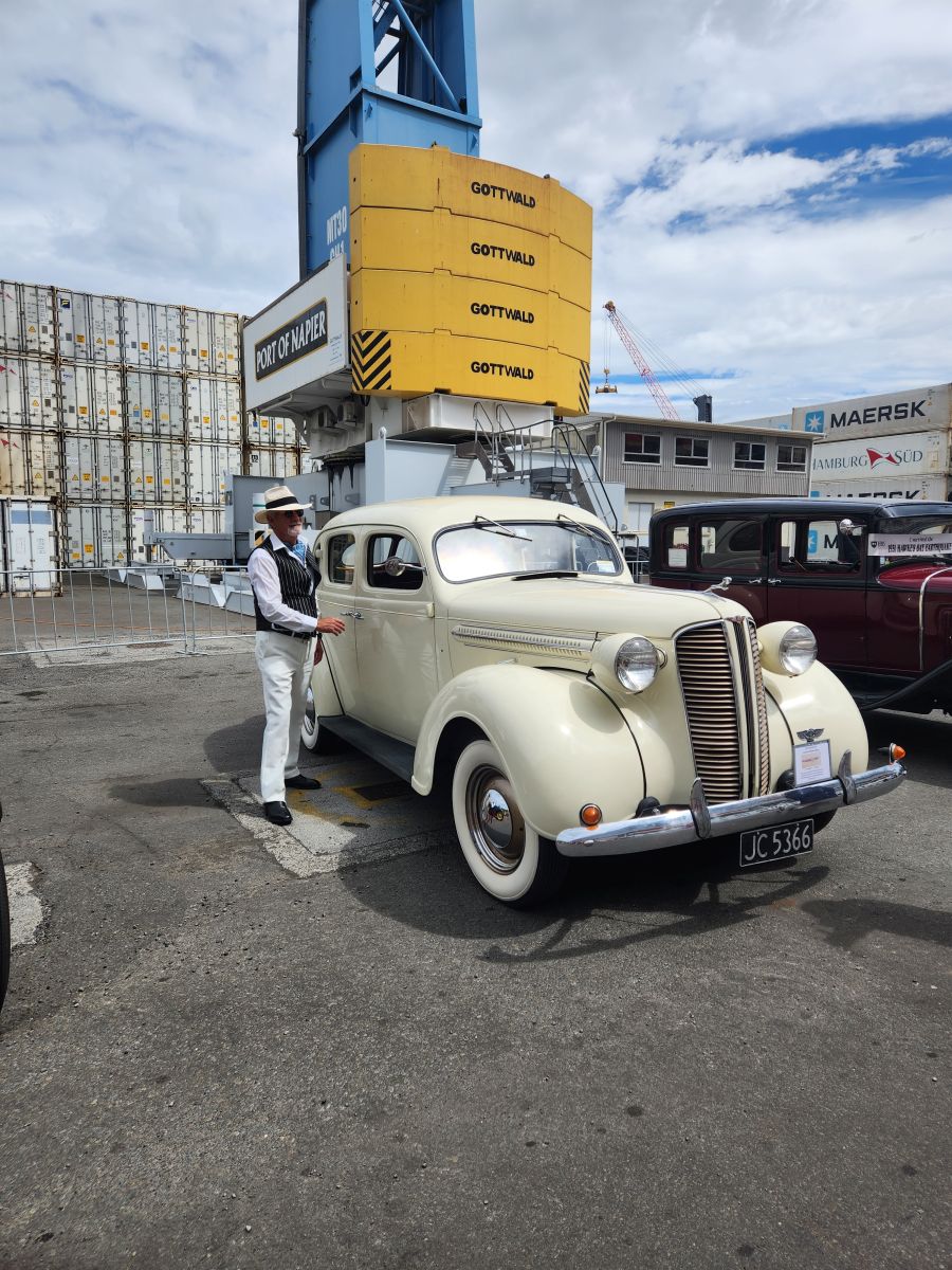 Then back to the shuttle, where we saw the six sisters buildings and onto the cruise ship pier, where we were treated to an antique car show with all the car owners dressed up in 1930’s style garb. Wonderful! We wandered around the cars for a bit, then watched from the balcony as they all drove off as we got ready to sail.