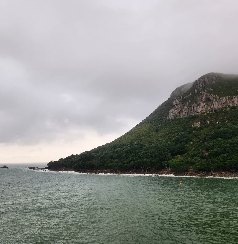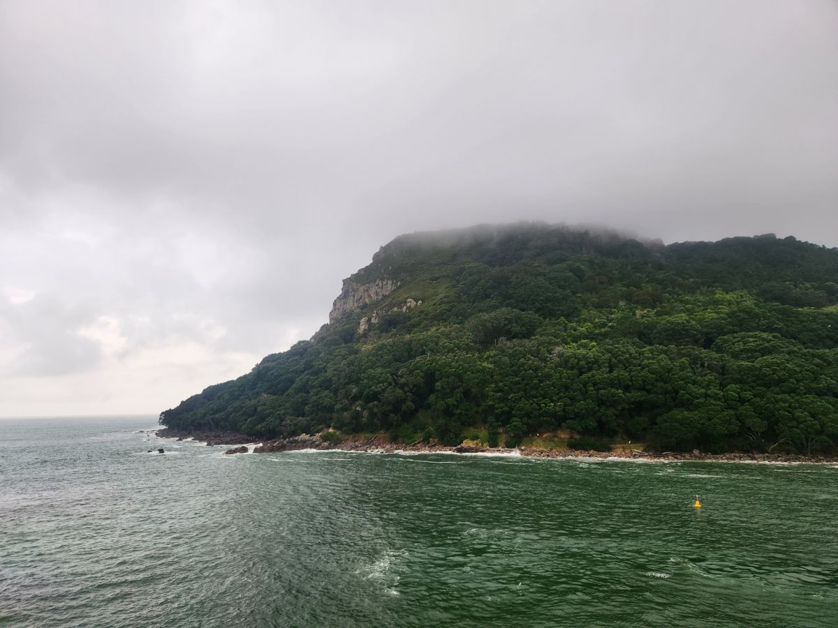 First of all the sail in is beautiful – with the mountain sitting solitary on a peninsula at the end of this narrow strip of land between two bays. It is lush and green and looks perfect for a morning of hiking and explorations.