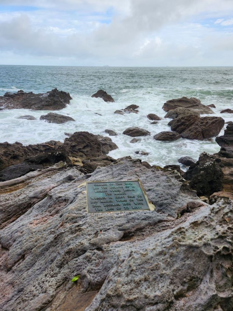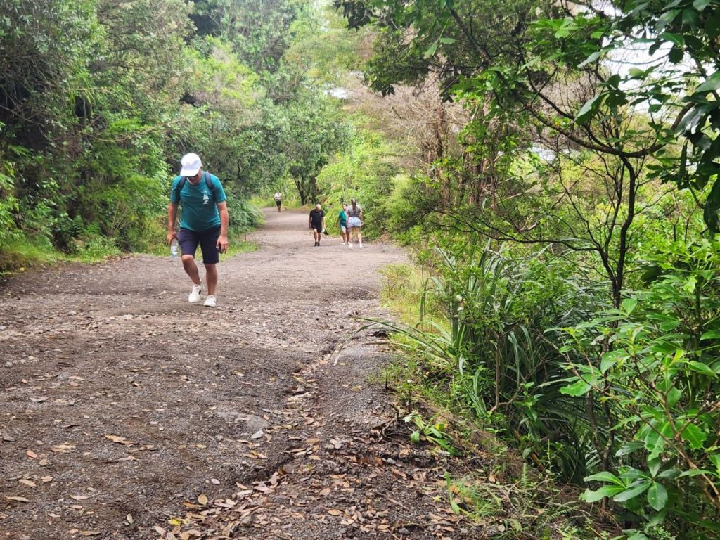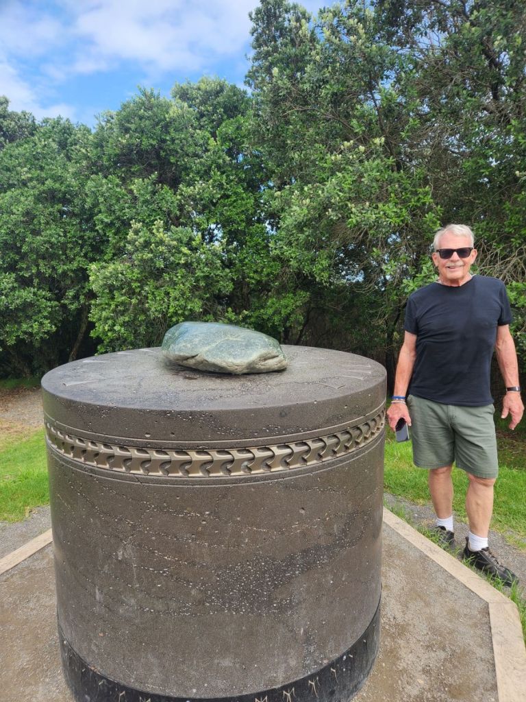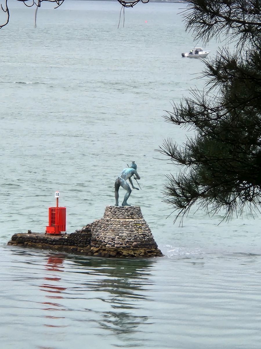 It is an easy walk actually. Relatively flat and very beautiful. Passing the statue of Tangaroa, the god of the sea in Maori culture. He is placed in the harbor with his battle staff and warrior club, crouching, which tradition says is part of a ritual that challenges visitors to show if they have good or bad intentions.
