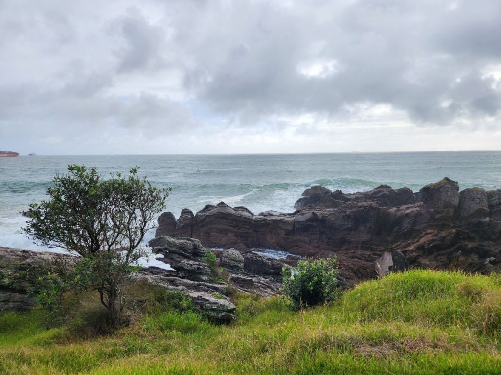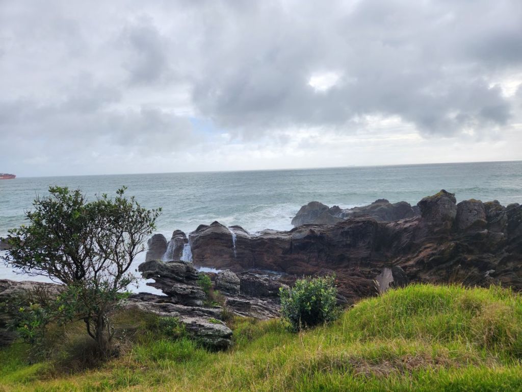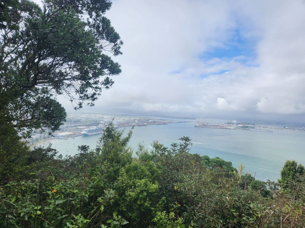 Doing a little research, we found a bunch of trails on the mountain – one that circumvents the base and others that climb up to the summit. We figured we’d take it as it comes and see how we feel about hiking to the top. Heading out around 8, it is relatively cool and cloudy, which is helpful, as we make our way down the quiet waterfront over to Mount Maunganui. At the beginning of the trails, we find a really good map that shows us all the trails. Deciding to do the easiest first, we head around the base of the mountain, about 2 miles all the way around.