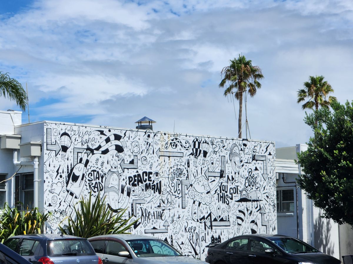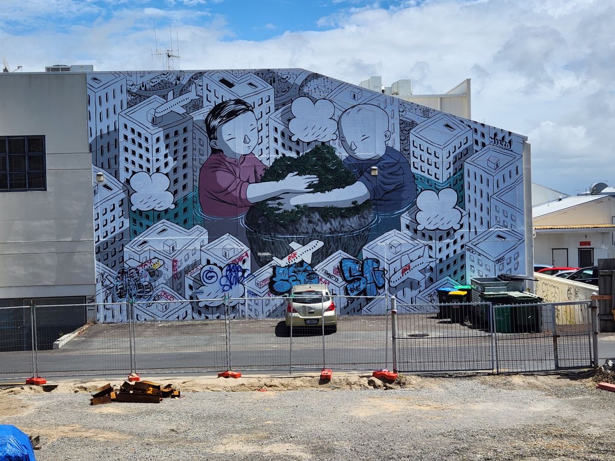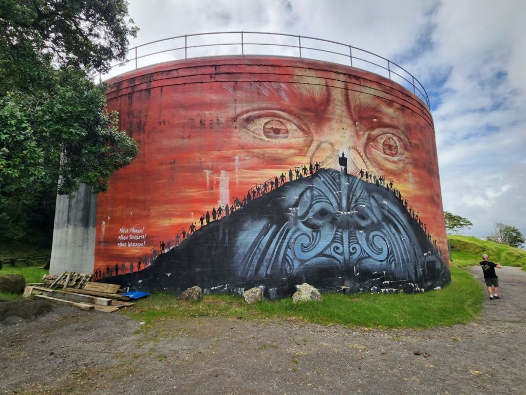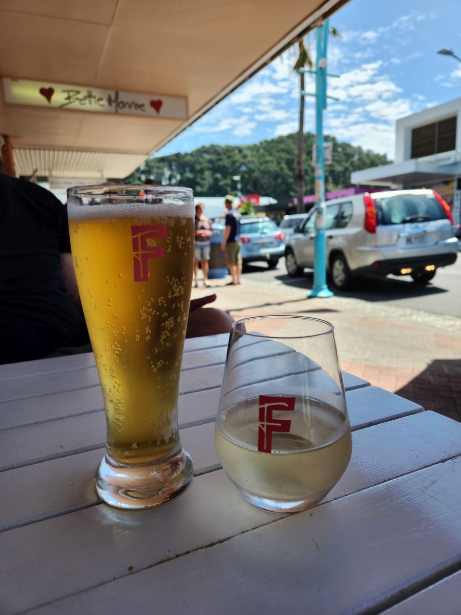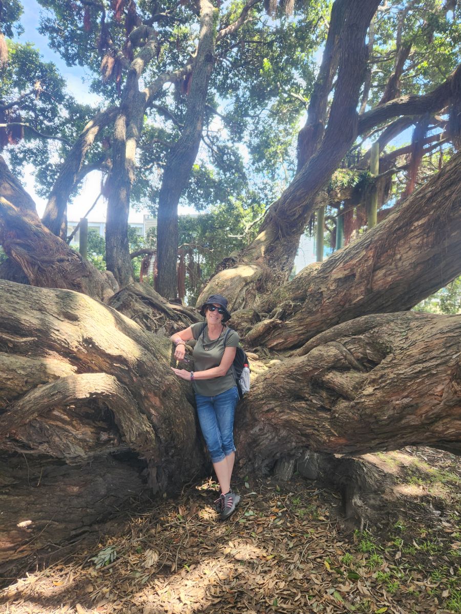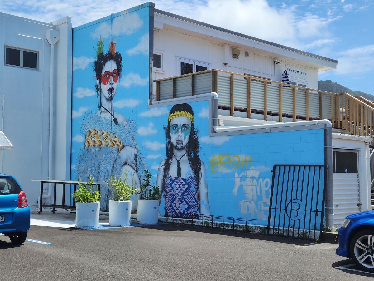 Hiking all done, we wander back through town, stopping at Brew Co – and apt name for a brewery – to cool off and relax a bit. Refreshment handled, we continue our wanderings through town, finding a bunch of great street art murals and then completing our meanderings at the Pohutukawa Tree – at 500 years old, thought to be one of the oldest such trees in the region. It is a lovely little spot with tons of shade from this massive tree that has been propped up with huge wood posts after it split during a storm in the 1990’s.