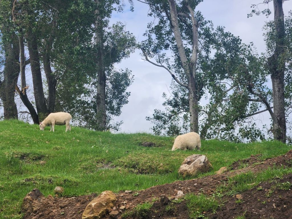 It only took us about an hour to reach the summit where we rested a bit, then started the trek down, choosing to go around the other side of the mountain for more fabulous views. There was a gorgeous look out at the end of the mountain, then the path led us down, down, down (boy are we glad we didn’t climb up this path!) through more open fields with sheep and this great water painted water tower until we were back at sea level.
