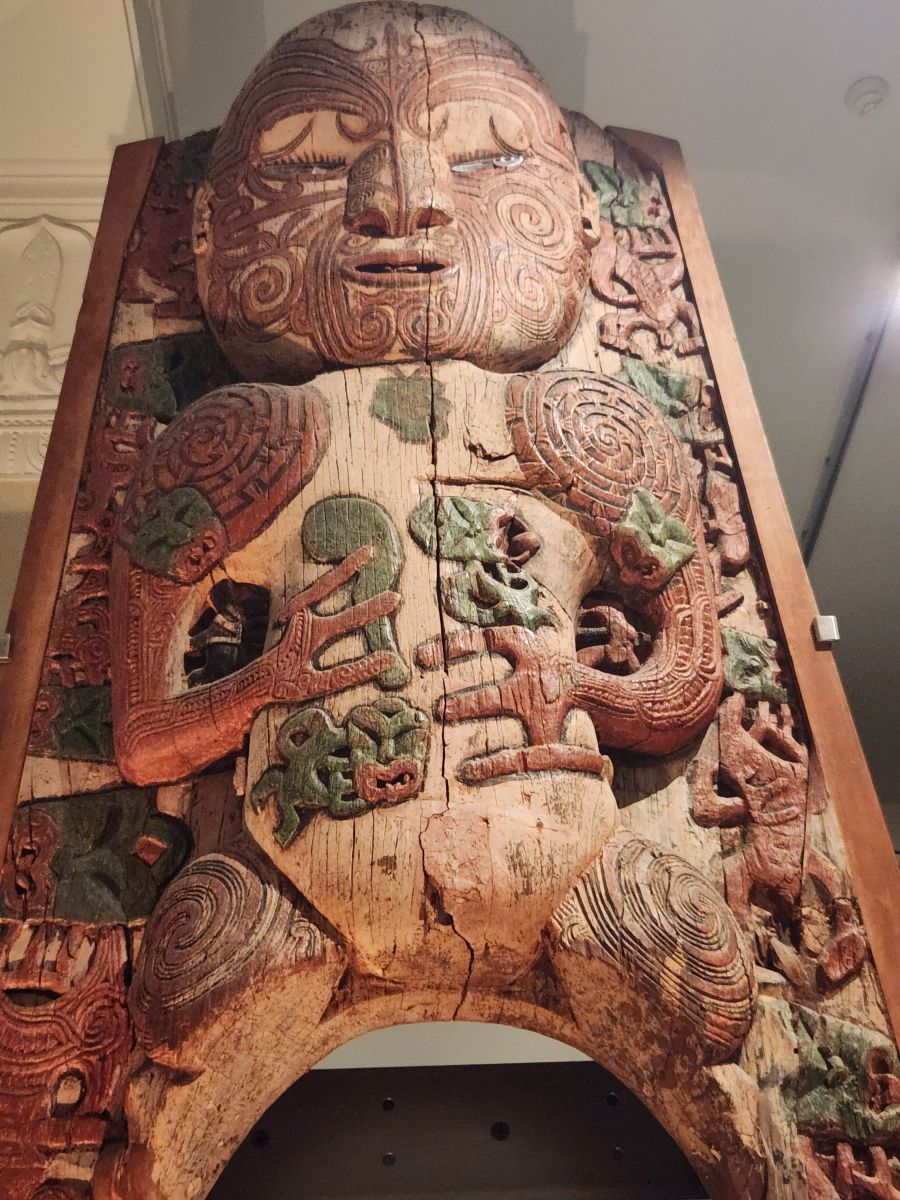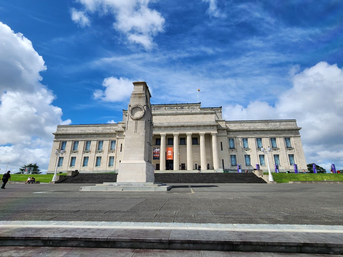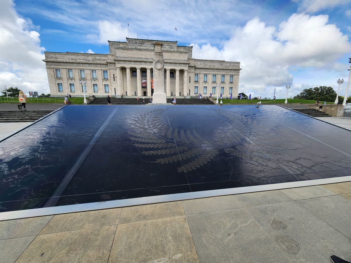 Last port! Amazing, we cannot figure out where the time has gone! Since we’ve been to Auckland a couple of times before, we didn’t have anything special planned. Just wandering and museums. Got out fairly early to make the opening of the Auckland Museum, about a 40 minutes walk through the city and a couple of great parks. We wound our way through the relatively empty streets up into the hillside, passing through Albert Park – a gorgeous green space with flowers and statues and a fabulous view of the Sky Tower, the tallest building in the Southern Hemisphere. This whole area was really affected by the rain last week – and there are trees and limbs down across the paths in some areas. But today, the weather is beautiful and it is a lovely way to start the day.