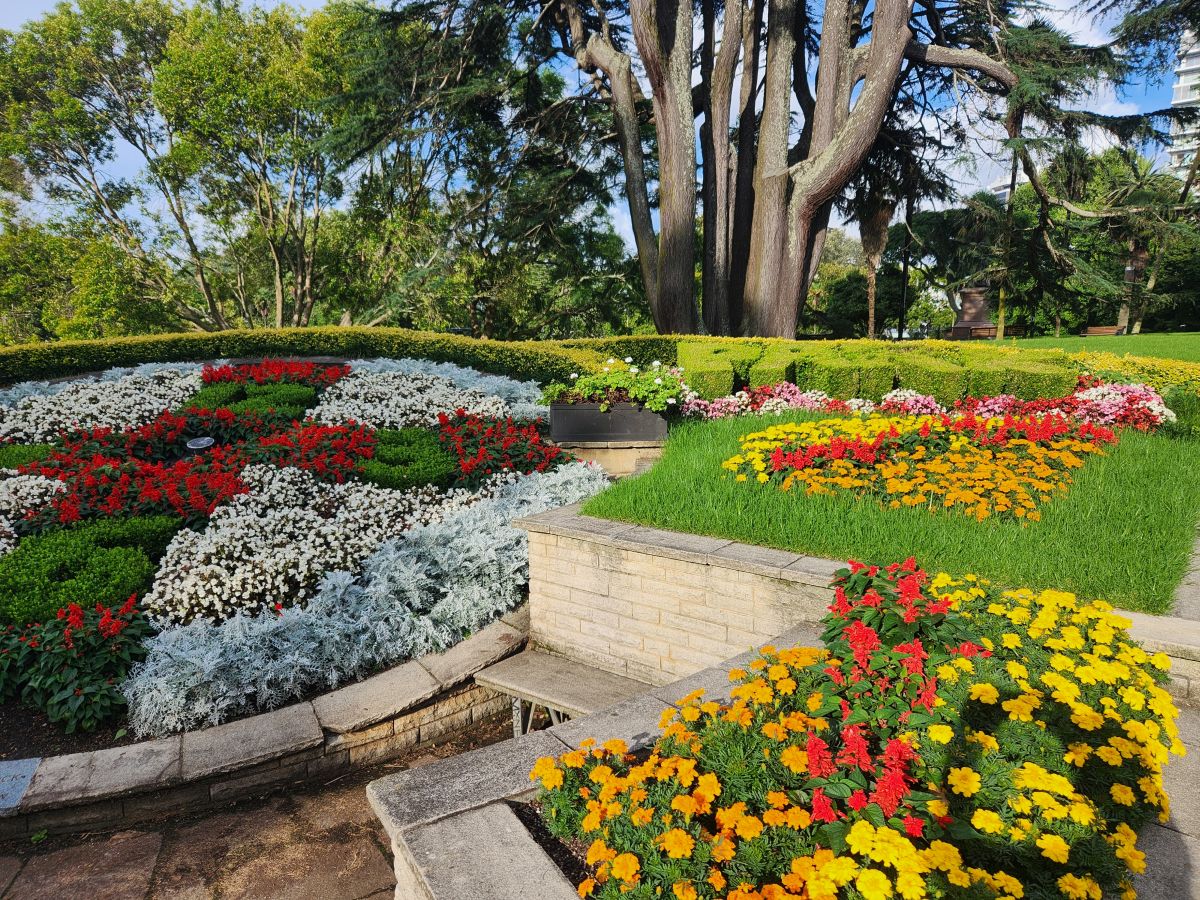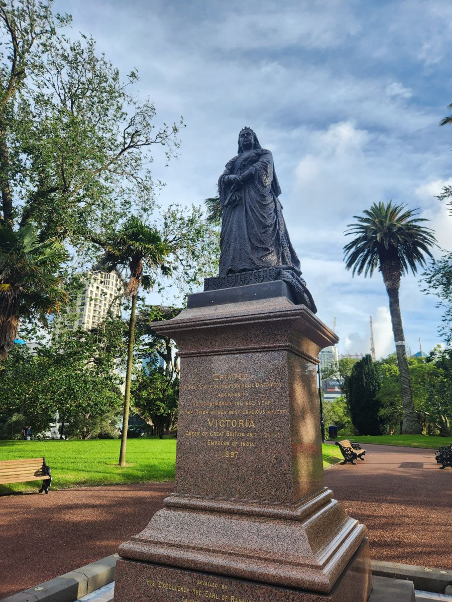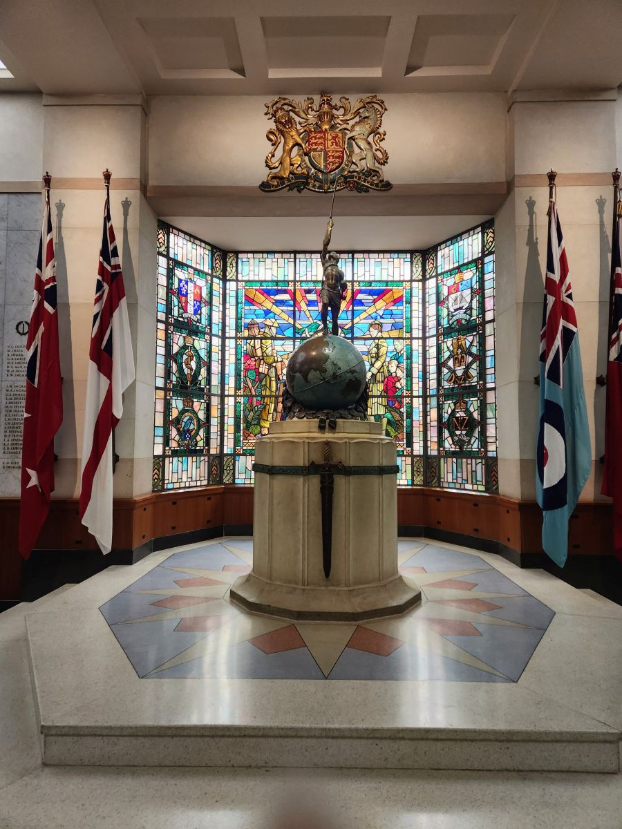 Last port! Amazing, we cannot figure out where the time has gone! Since we’ve been to Auckland a couple of times before, we didn’t have anything special planned. Just wandering and museums. Got out fairly early to make the opening of the Auckland Museum, about a 40 minutes walk through the city and a couple of great parks. We wound our way through the relatively empty streets up into the hillside, passing through Albert Park – a gorgeous green space with flowers and statues and a fabulous view of the Sky Tower, the tallest building in the Southern Hemisphere. This whole area was really affected by the rain last week – and there are trees and limbs down across the paths in some areas. But today, the weather is beautiful and it is a lovely way to start the day.