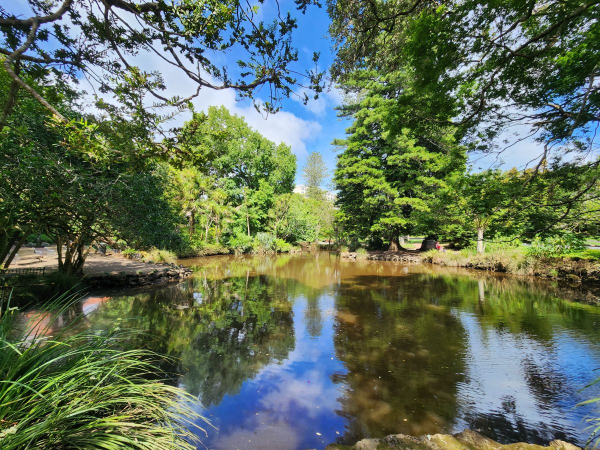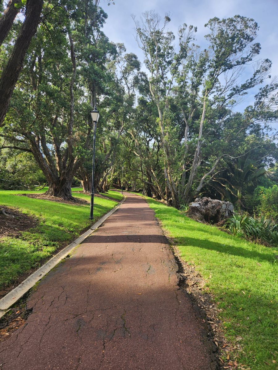 After climbing (yes, mostly uphill) through more of the city, we finally make it to the Auckland Domain, a monstrous park built on top of an old volcano above the city. The Domain was totally flooded last week in the rains, but today, all was fine. You could definitely see the remnants of the water flow, lots of mud and broken pavement, some trails closed, but overall, fortunately not much damage.