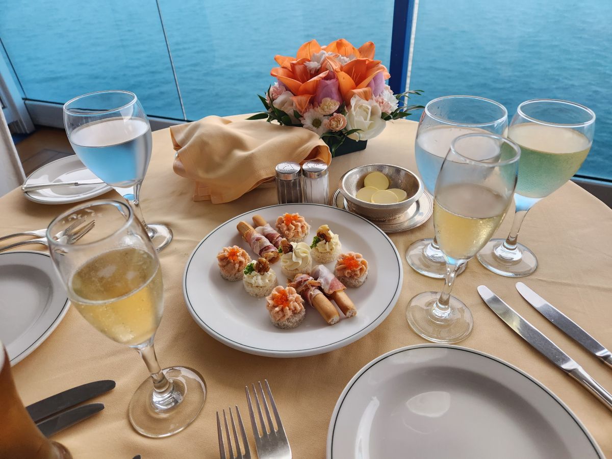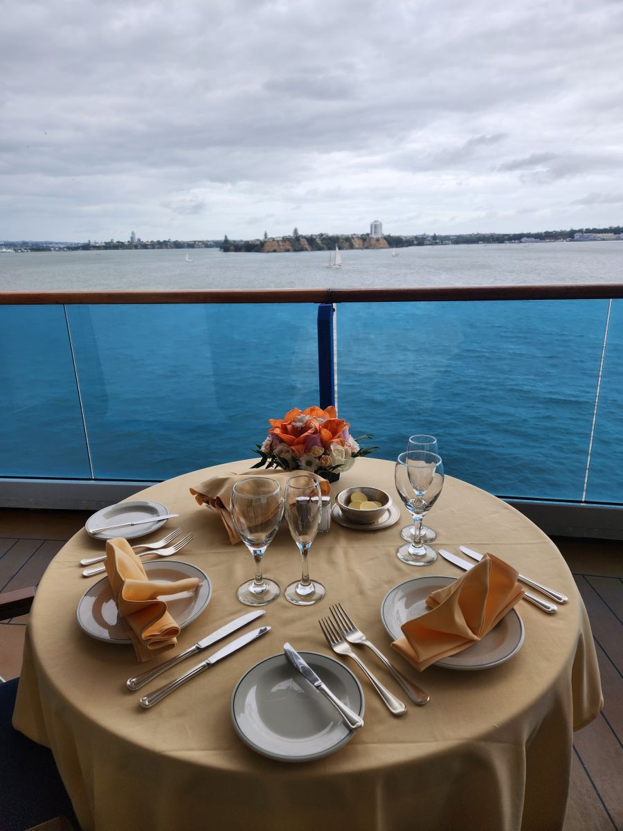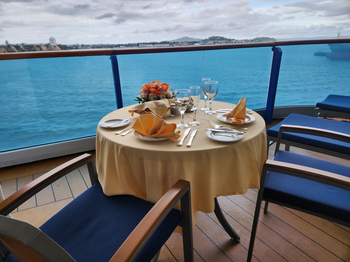 Then it was the short walk back to the ship to prepare for our Ultimate Balcony Dinner! Yes, we sprung for the dinner, well, sprung being relative because we had non-refundable credits to use. Plus, we have the Ultimate Balcony to do it on – let’s not forget that. And we are in port until 10pm so we don’t have to worry about rough seas or windy conditions. So why not?