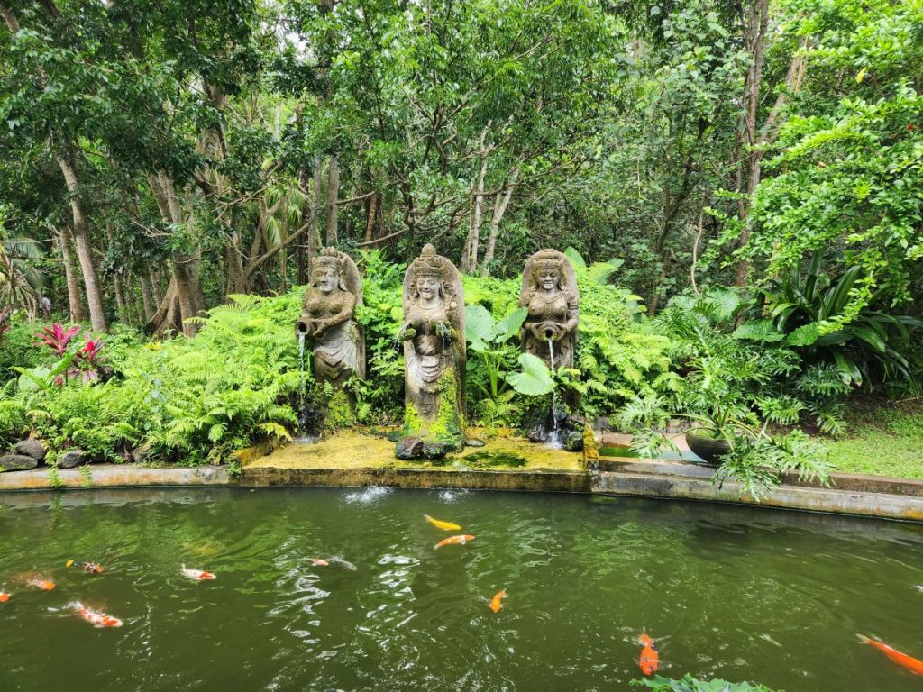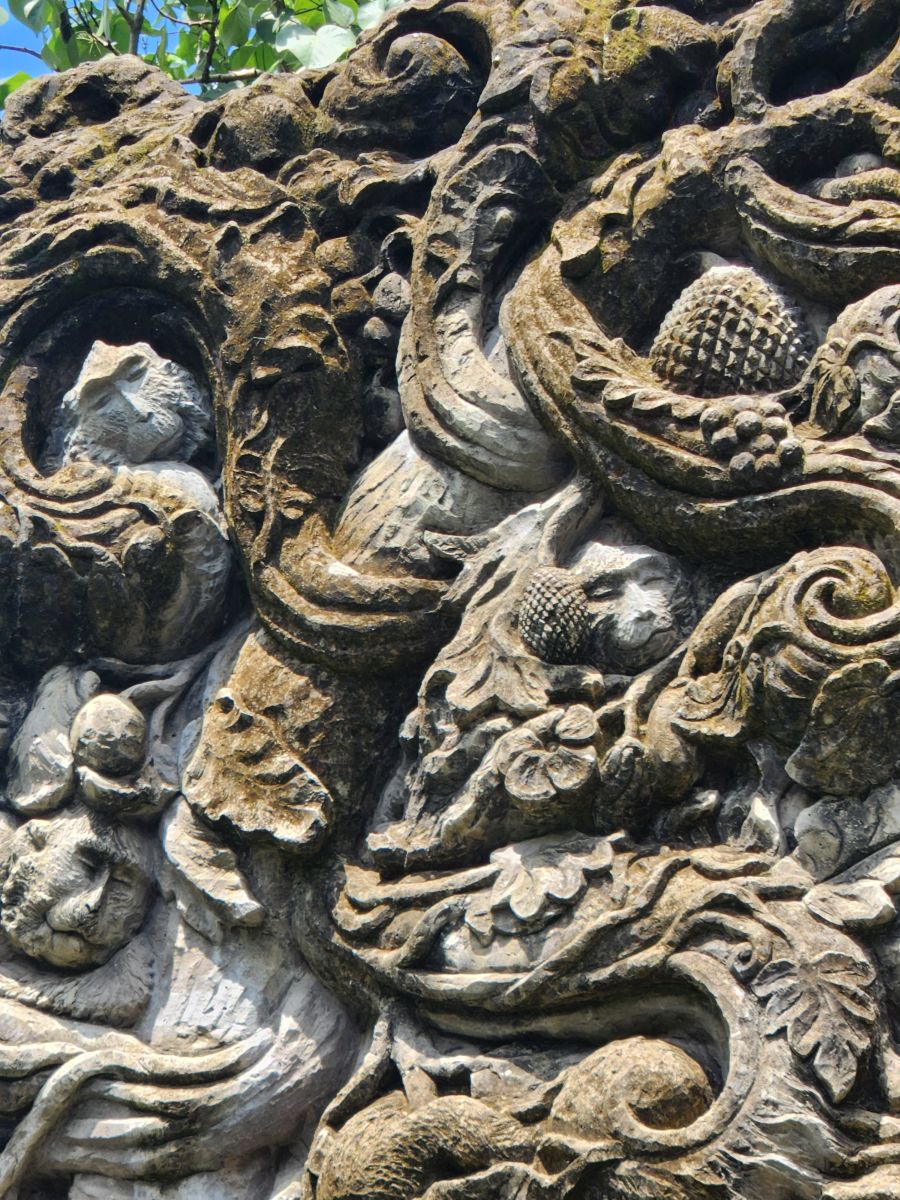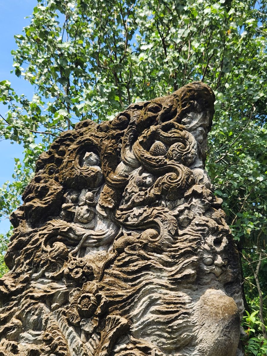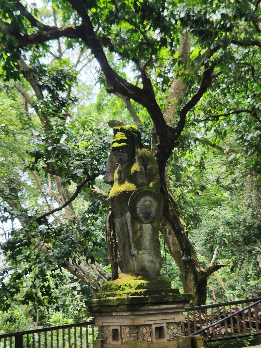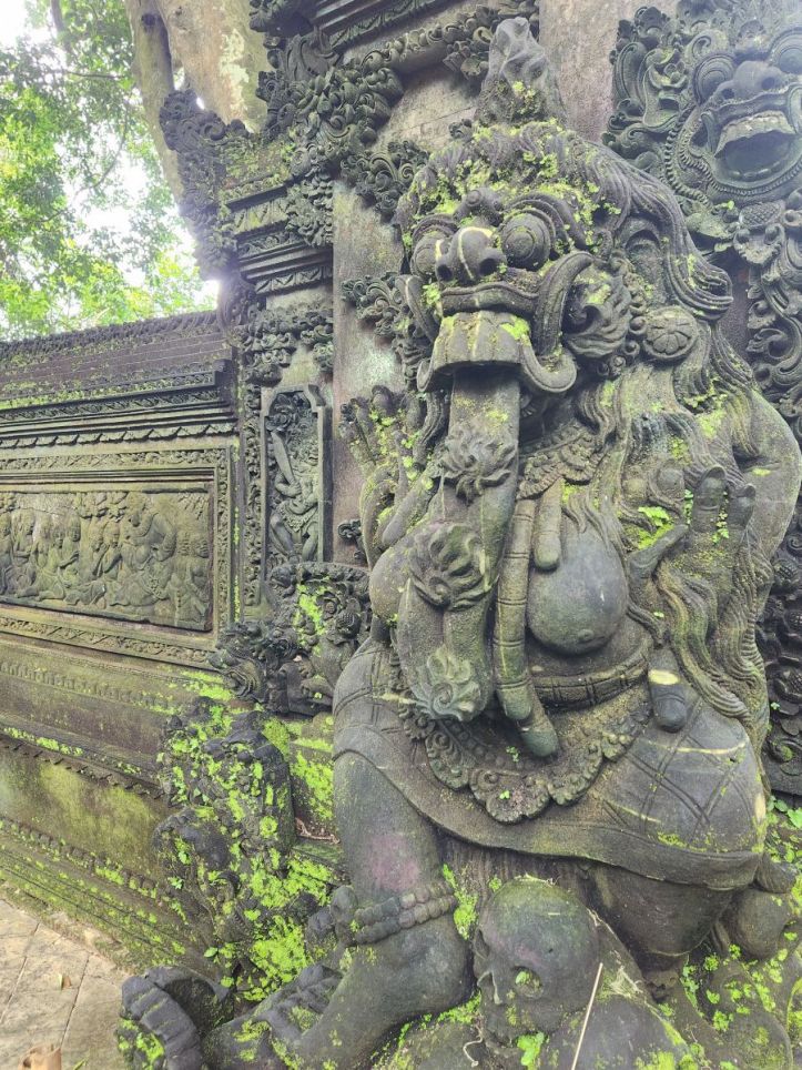 Moving on from the lagoon, we cross the entrance bridge, through the great carvings towering over the walkway and proceed to the dark tunnel – with more requisite monkey carvings – that leads into the park (after putting our water bottle and fish food inside the backpack so as not to entice the monkeys).