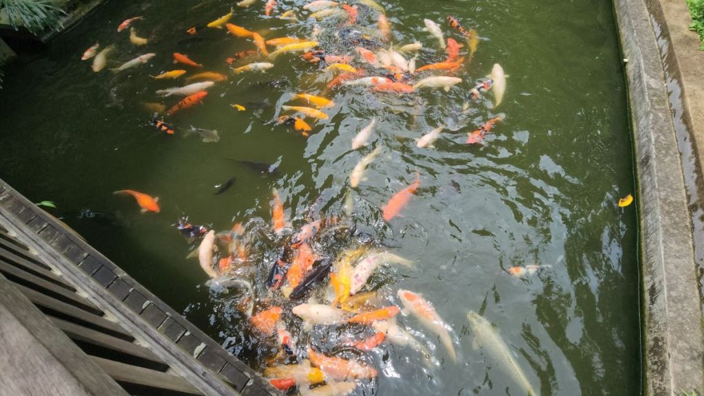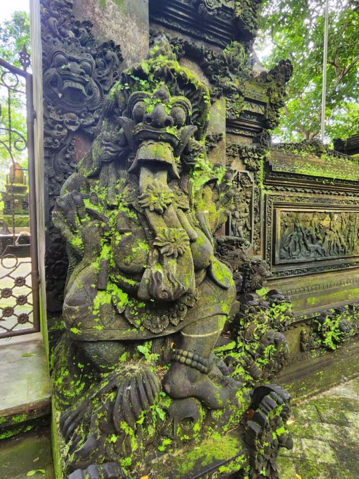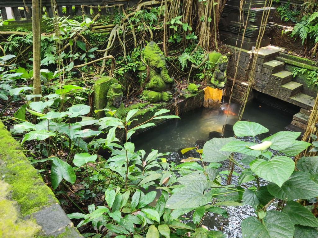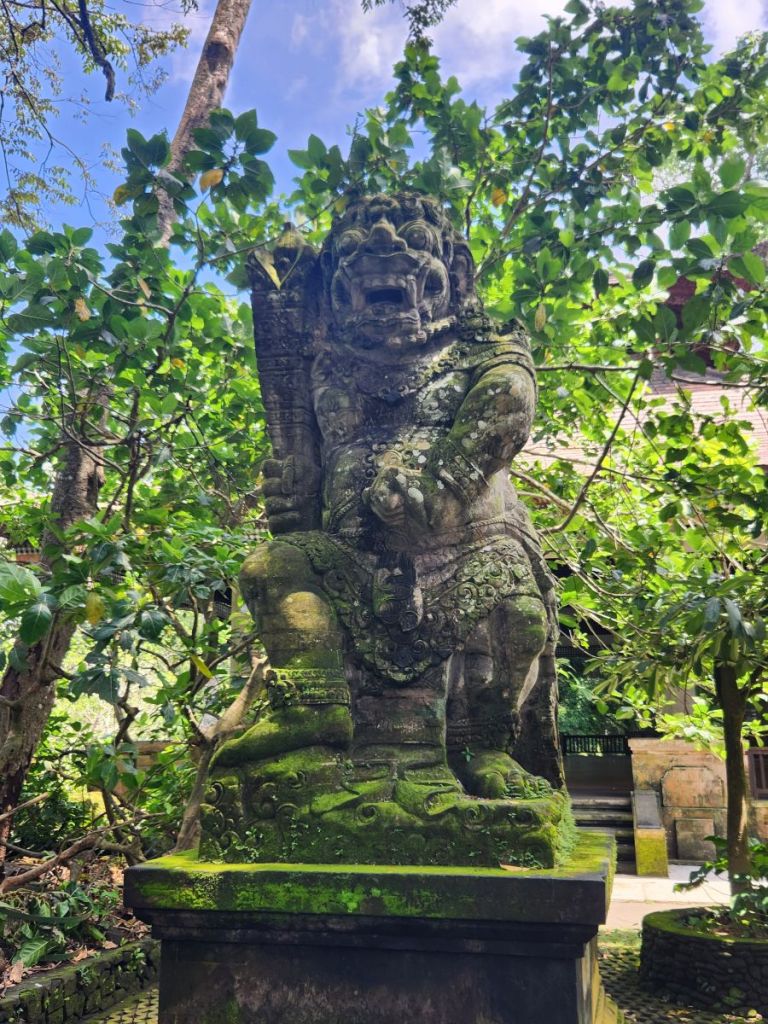 From the cemetery we slowly make our way back out to the main gate, passing many more great statues and of course, many more great monkeys until we are out of the park proper and back to the fish lagoon where we finish feeding the fish all their food and head out onto the streets of Ubud.