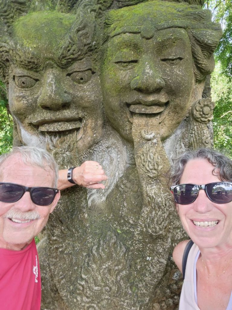 Then it is on our way to the store, walking along the main road, J. Raya, navigating the skinny little sidewalks made up of crumbling bricks, passing over the Campuhan River bridge before hiking uphill (all uphill!) to reach Bintang. Phew. Nice morning work out there. Shopping complete, we don’t even bother trying to get everything delivered, they’ll never find the place – we can barely find it! So we order a Grab, which shows up immediately. As we are walking toward the car, another guy starts talking to our driver and we’re thinking, huh? What? He’s not trying to steal our ride is he? But I greet the driver, who is named Kadek (of course, 2nd born) and he asks “Cathy?” And all is well. Except the random guy gets in the car too – up in front with Kadek. Ok, maybe we’re sharing? Not usual, but heck, we don’t care, it is so cheap for these rides, if they driver wants to double dip, we’re not complaining. But, as it turns out, this guy (who is an American from LA, first time in Asia) has confused our driver with the driver he had booked to take him on a tour of Mount Batur. Too funny! So Kadek has to take him back to Bintang to get his other driver. Priceless!