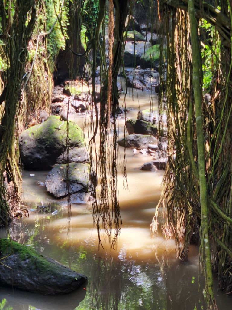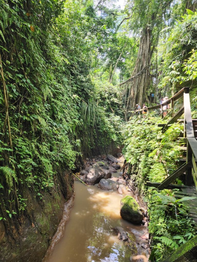 Walking the opposite direction we had previously helps us explore even more of our little “neighborhood,” passing the shops, the restaurants, the laundries and villas. This is like a cross between Chiang Mai and Siem Reap in the old days. Narrow little lanes, scooters and cars vying for space, trying to pass each other – a 3rd world Amalfi Drive is what Ed says! So true. We find a couple of the restaurants that we want to visit while we are here as we walk down and around to the Monkey Forest, successfully navigating the tiny, narrow bridge and tunnel that only scooters can use that connects our road with the Monkey Forest road. You get used to walking on the road dodging obstacles, scooters and cars pretty quickly!