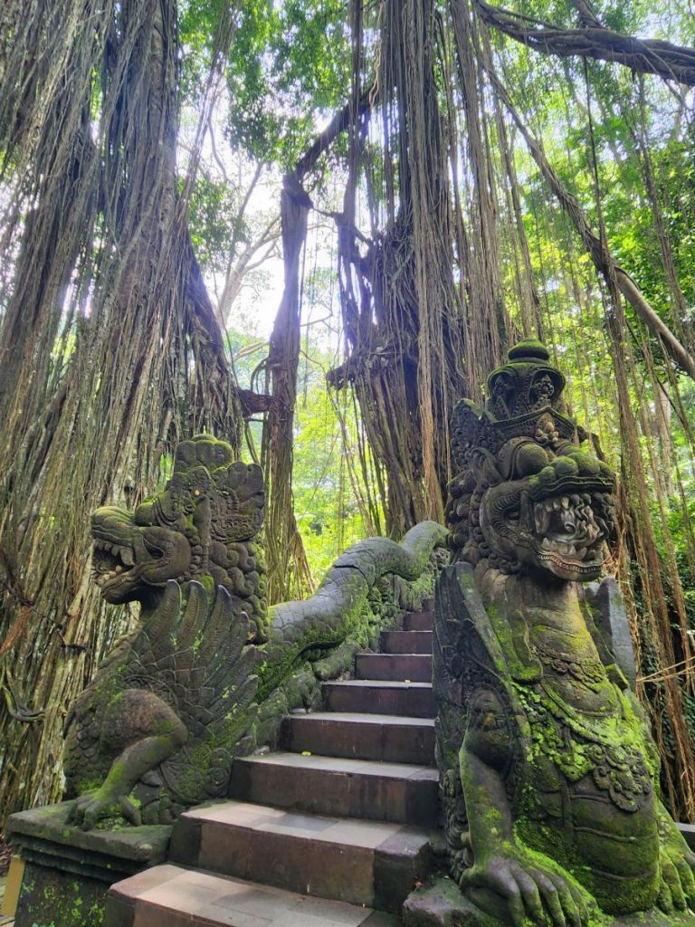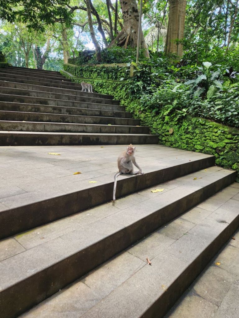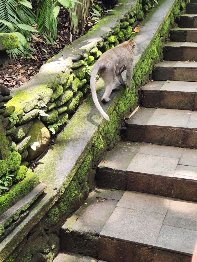 …we debate what to do since it is supposed to rain today, but it is bright and sunny now. Monkey Forest! It’s not that far a walk and – what the heck! Let the odyssey begin!