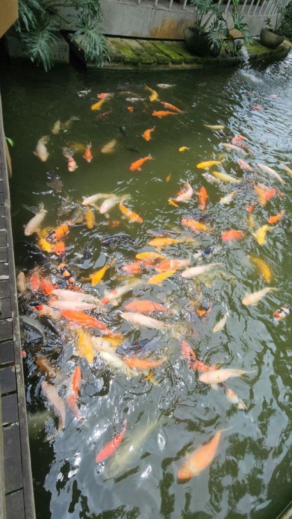 Other people arrive behind us, so we don’t feel too dumb, but we do finally figure out that we need to go to another gate about 5 minutes away to get into the park. Ok. That problem solved, we queue up to buy our entry, buying some fish food as well, and head into the park. We first stop to feed the fish, but decide we need to get into the park for the monkeys since people keep pouring in around us. We can feed the fish later! Monkeys are more important!