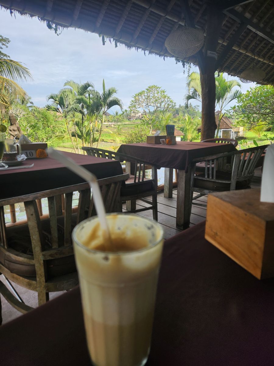 …before being rewarded with a refreshing beverage at Karsa Kafe, 30 minutes into the trek. And not the refreshing beverage you are all thinking about, oh no. It is 8:30 in the morning after all people! Come on. We actually, for the first time (I know, I know, how could we have missed this?) have an iced cappuccino. What a discovery! It is brutally hot – so who wants a hot beverage? And this fits the bill perfectly! Not only a great refreshment, the Kafe itself is situated right on a rice field and absolutely beautiful. Win win all the way around.