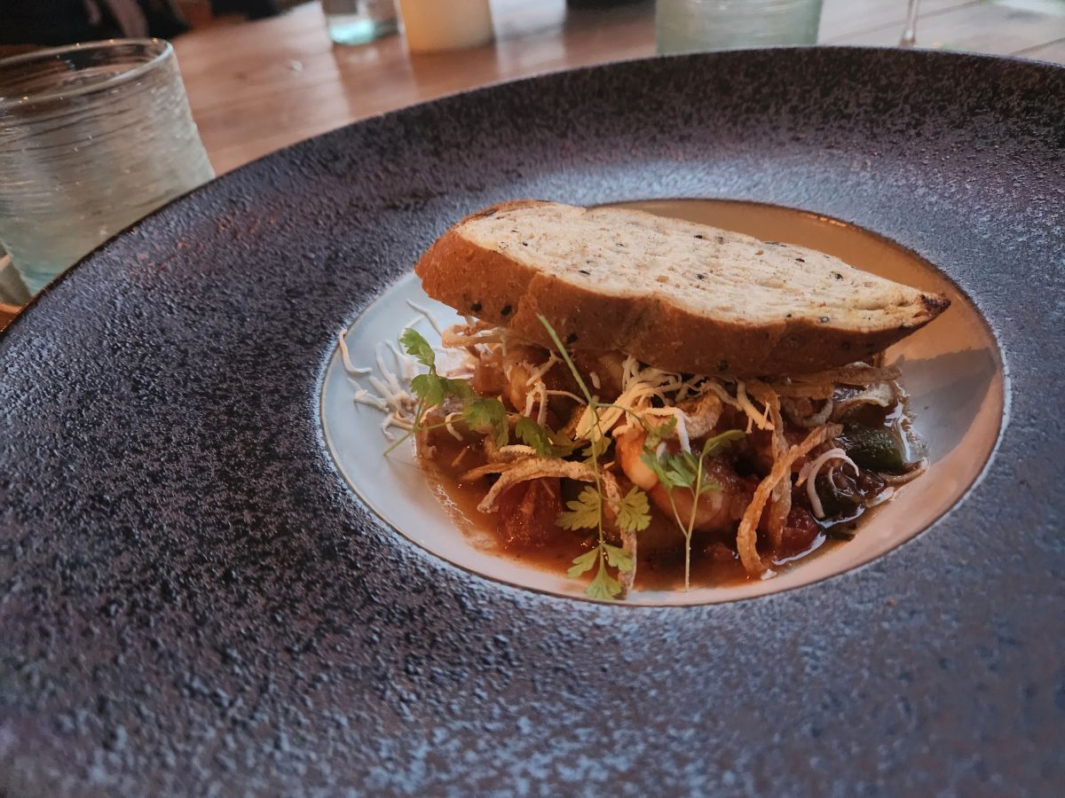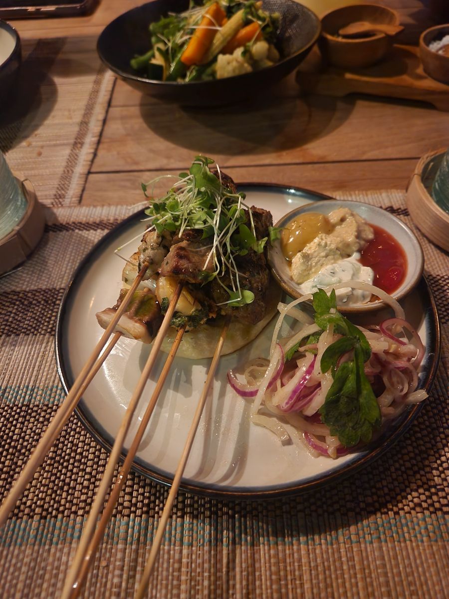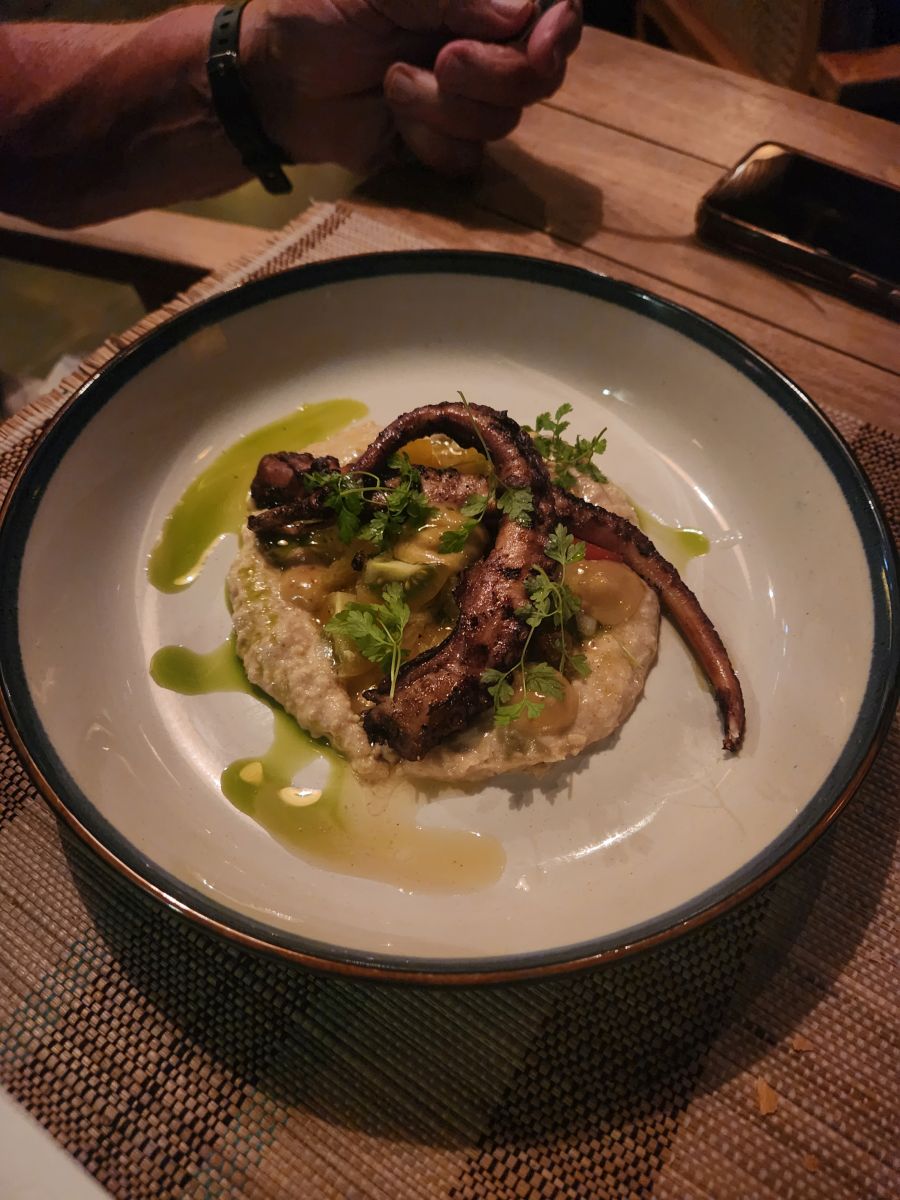 After that fun afternoon, we make our dinner plans, deciding to step away from Indonesian food (well, ok, yesterday’s lunch for me was not really Indonesian) and go Mediterranean. There is a fabulous restaurant called Chora just down the street that has a selection of Greek and Mediterranean specialties. Why not? It’s here! The atmosphere here is fabulous too, with a lovely patio filled with fish ponds and ducks right beyond the dining area. This is pretty much fine dining too as everything is top notch with a bevy of waiters at your beck and call. And the food does not disappoint. Prawn Saganaki, seafood Avgolemono soup, grilled octopus, tasting skewers and sautéed vegetables are all delicious and perfectly prepared. And the cutest thing is the check – which comes in an envelope that says “The Damage”! Too funny.