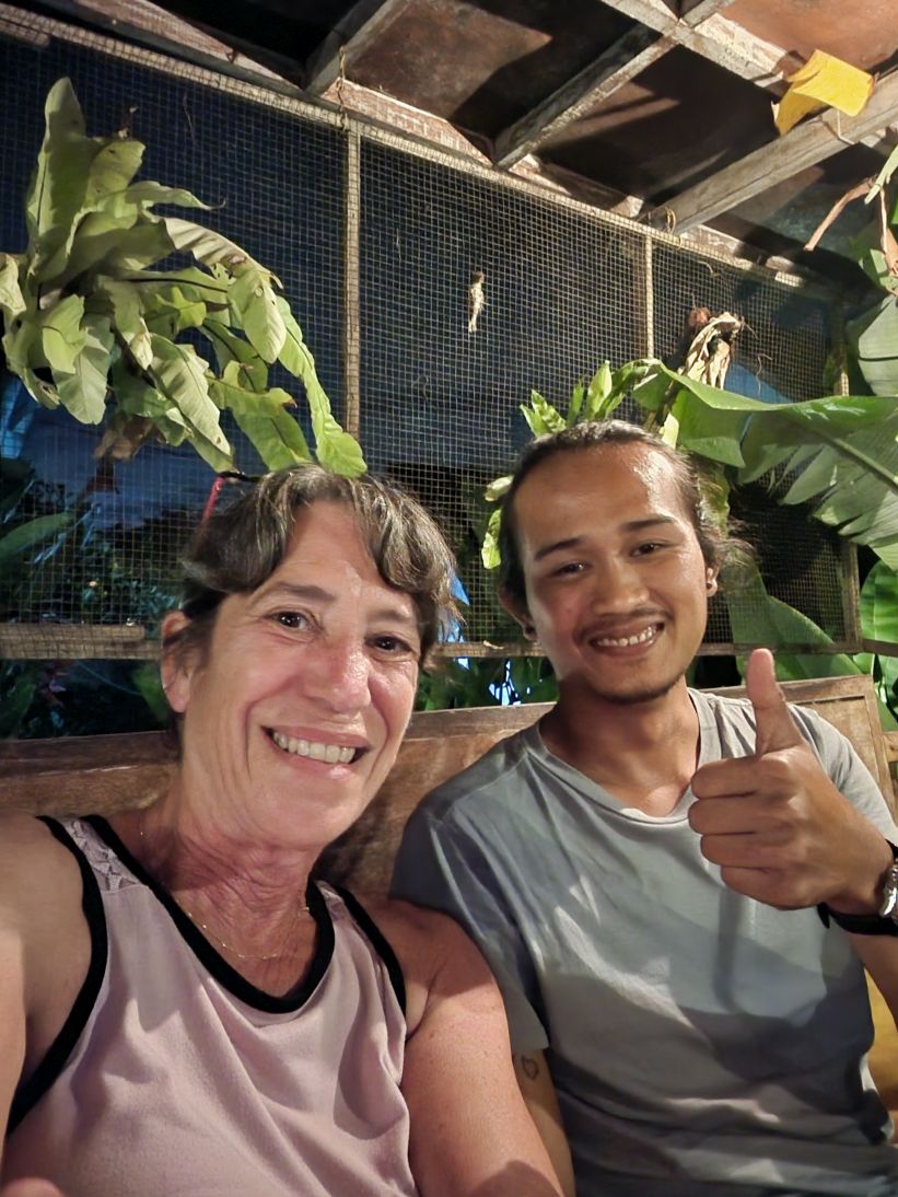 Unfortunately though, while Made was cleaning, the fuse box blew and we lost power. I had thought I smelled something burning, but couldn’t figure out what it was or where. It was the fuse box. We texted the owner Made, who came right over, inspected the box and said he’d be right back. He had to go buy a bigger fuse – he had just replaced the A/C in the master bedroom and the existing fuse wasn’t big enough. Handled! And with plenty of time to spare to shower, clean up and welcome our guest today – Ayu, the wife of Kadek Juniarta (from the NCL Dream). She came over after work to meet us and say hello. She is a wonderful lady, so fun and friendly and funny. We spent a lovely 2 hours hanging out and getting to know her. Hopefully, if her schedule allows, we will be able to go over to their house and meet the whole family.