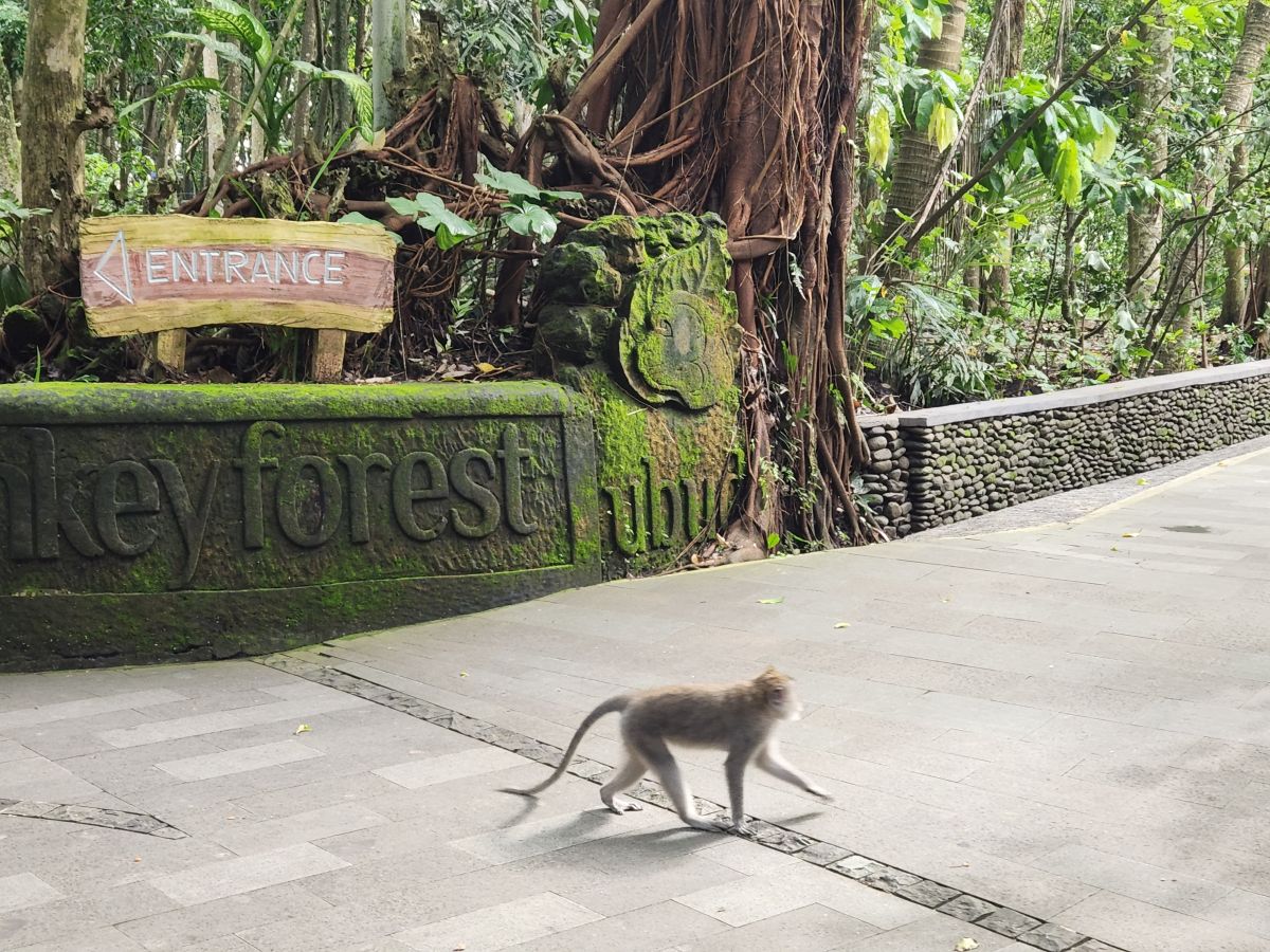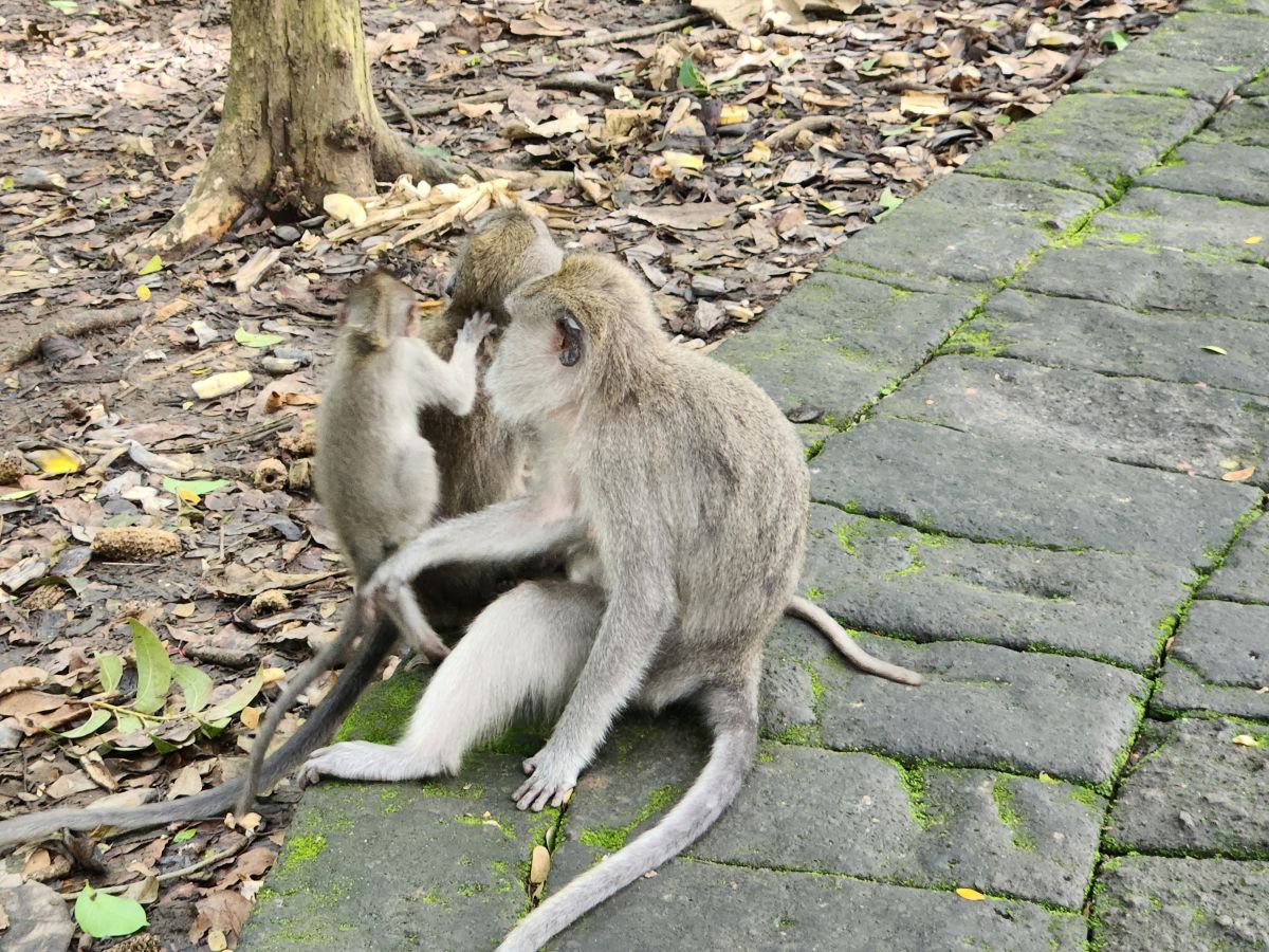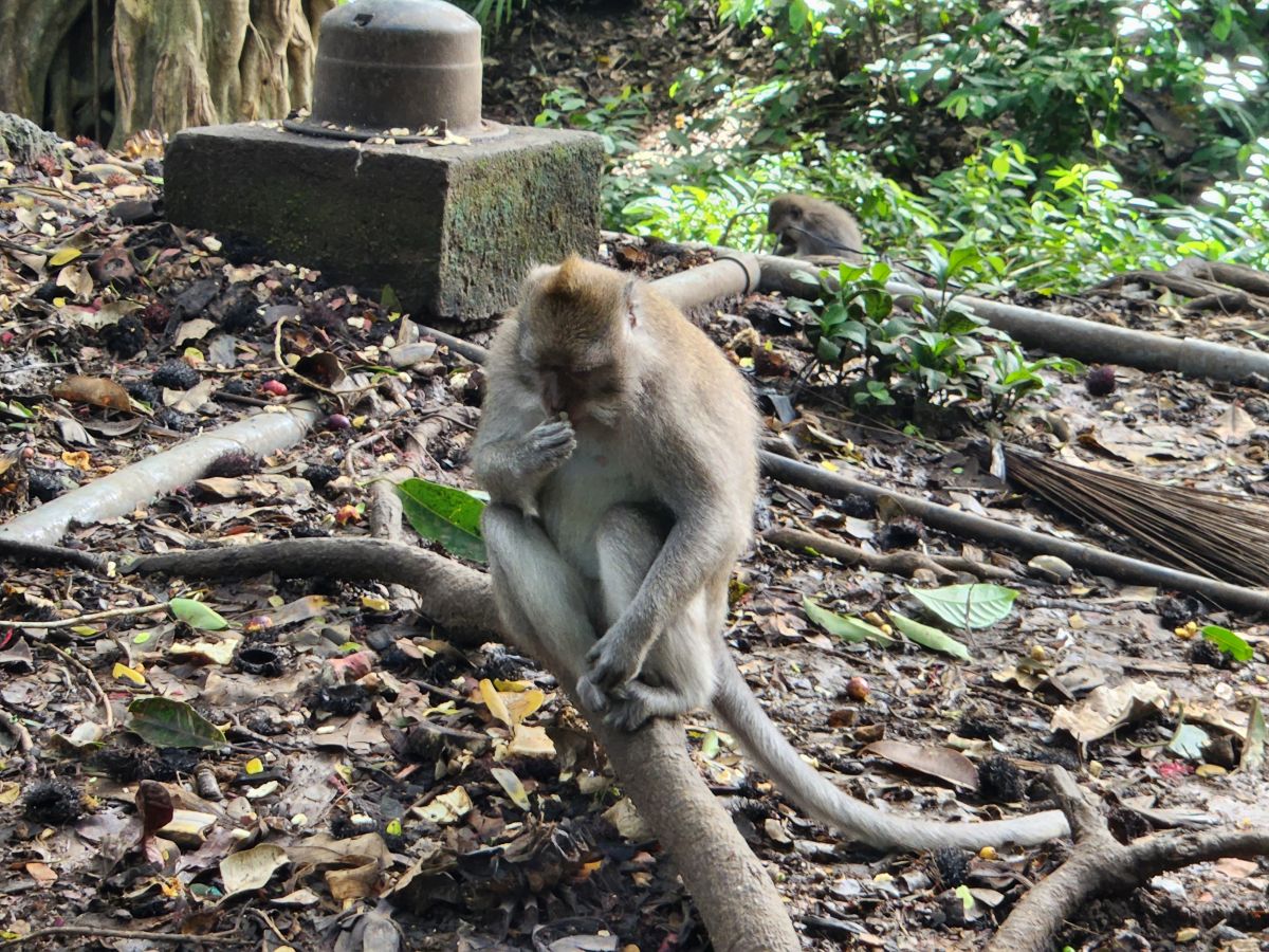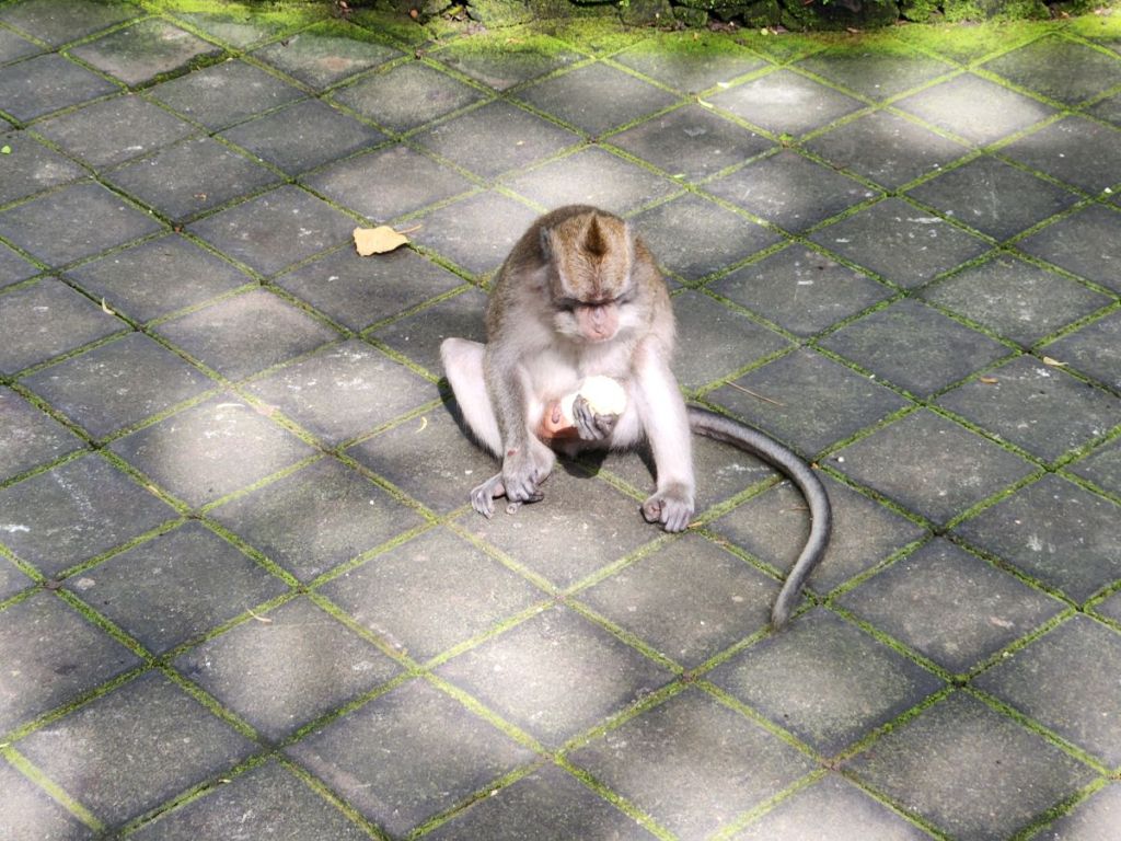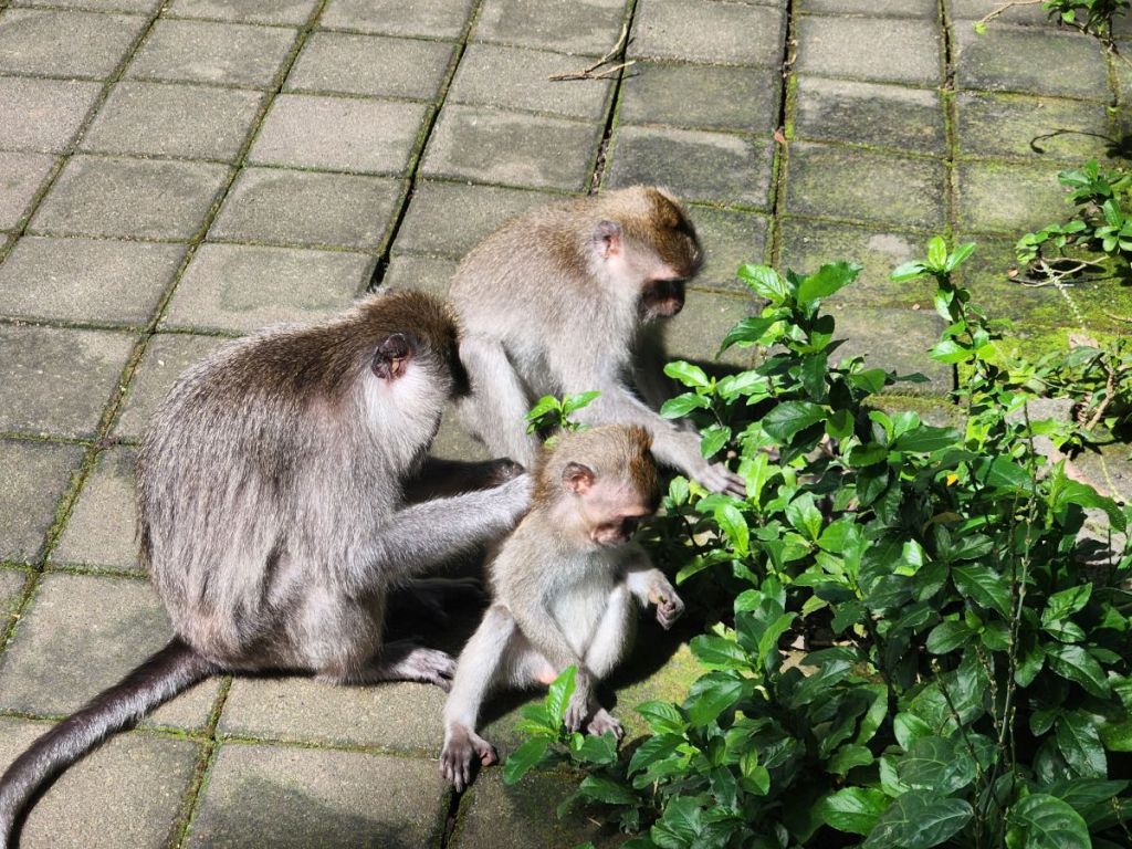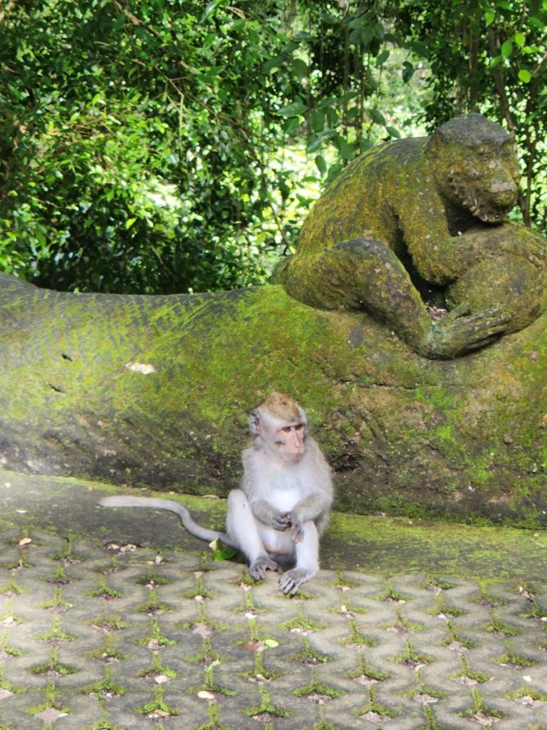 We have all morning to ourselves, as we are visiting Kadek’s family and home this afternoon, so we decide to go to the Monkey Forest again. Why not? We can go right when they open and hopefully avoid the crowds that were there when we visited over the weekend. It is lovely being out this early, actually. Not as much traffic or craziness on the streets and the walk to the forest is quite pleasant. We arrive before opening time and get in line behind 3 other people. Strategy successful! It will be great to have the park all to ourselves for a bit before the hoards drag themselves out of bed and swarm the place.