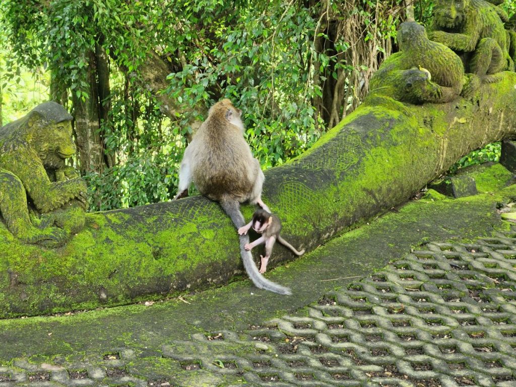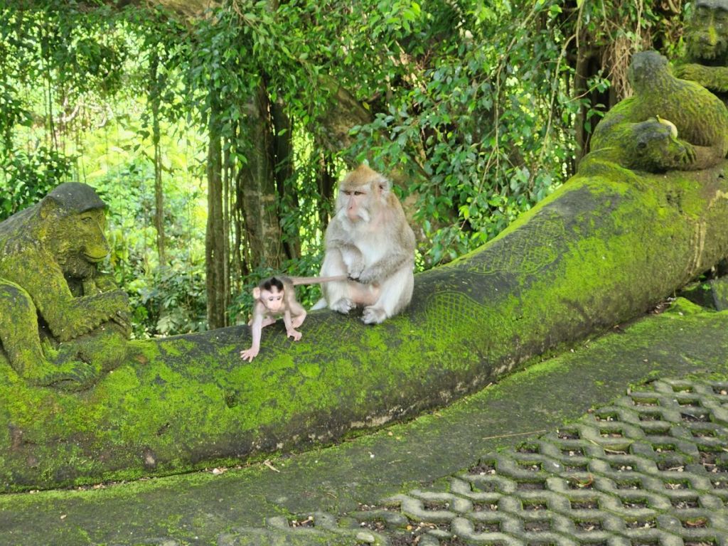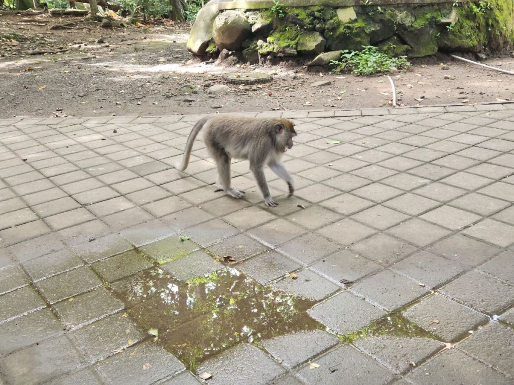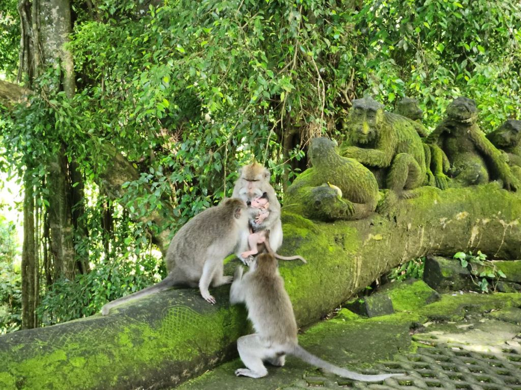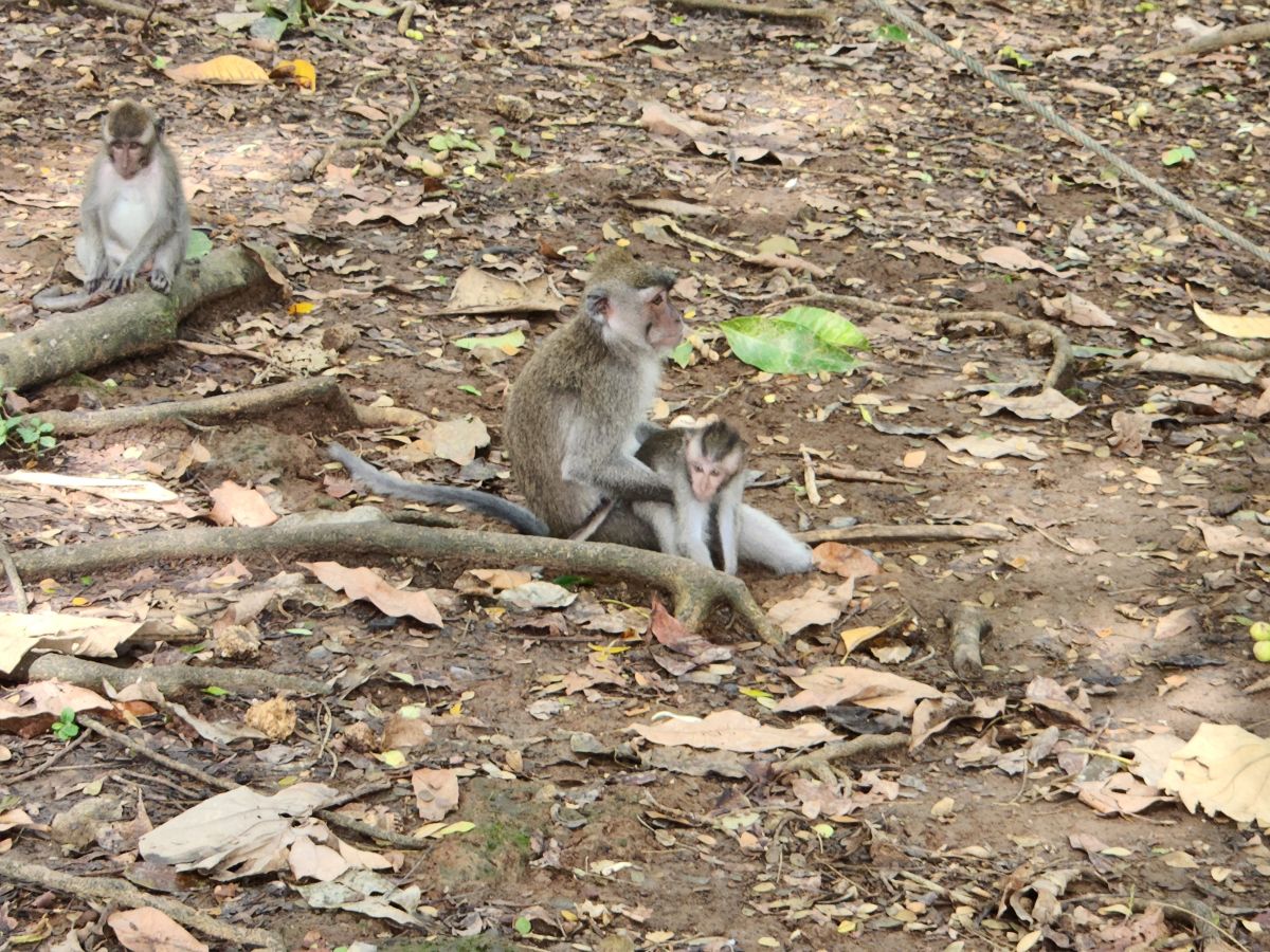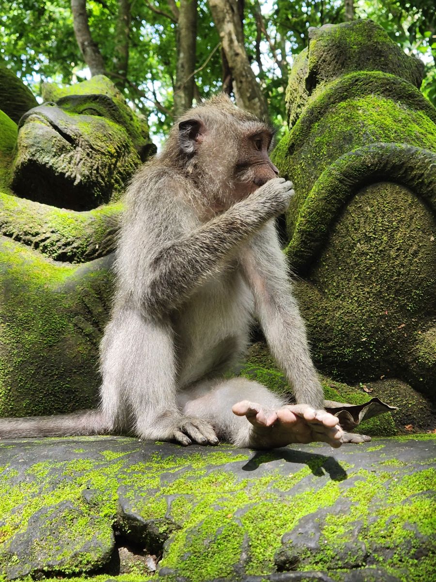 We have all morning to ourselves, as we are visiting Kadek’s family and home this afternoon, so we decide to go to the Monkey Forest again. Why not? We can go right when they open and hopefully avoid the crowds that were there when we visited over the weekend. It is lovely being out this early, actually. Not as much traffic or craziness on the streets and the walk to the forest is quite pleasant. We arrive before opening time and get in line behind 3 other people. Strategy successful! It will be great to have the park all to ourselves for a bit before the hoards drag themselves out of bed and swarm the place.