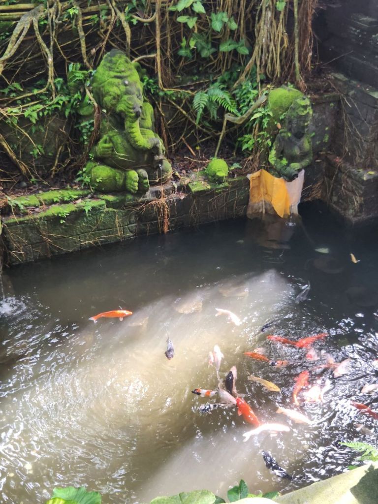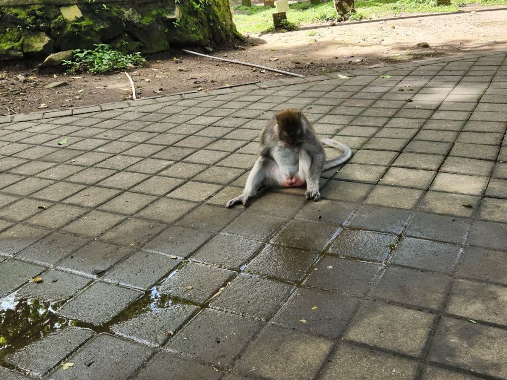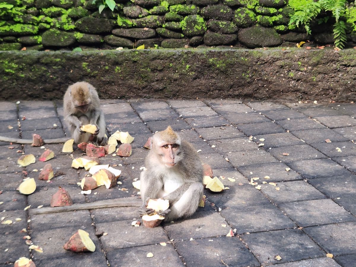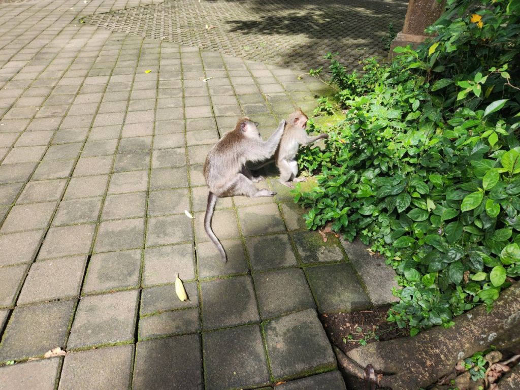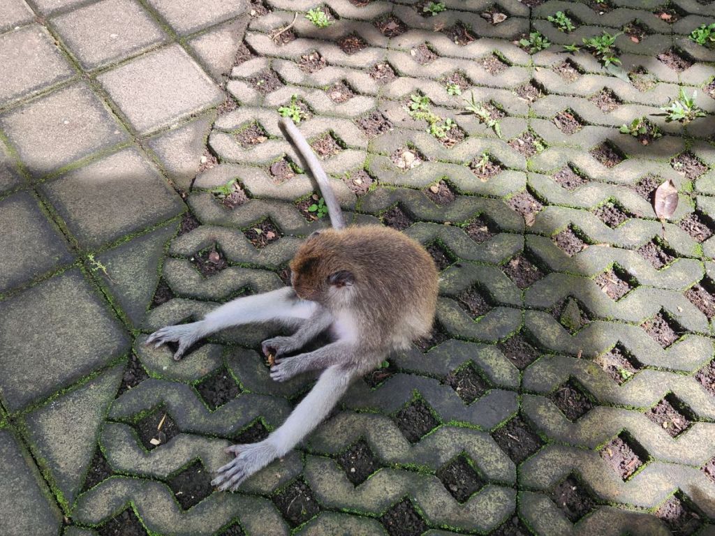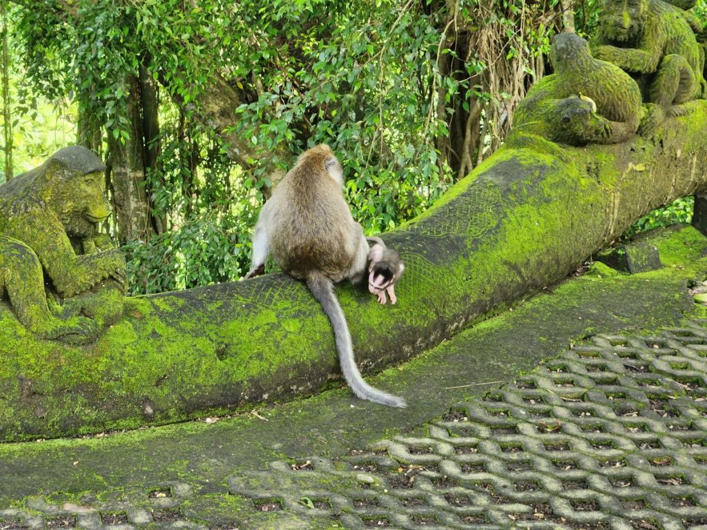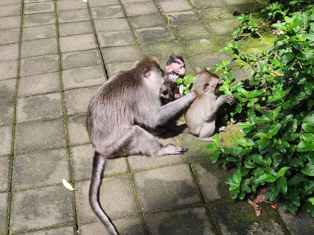 We have all morning to ourselves, as we are visiting Kadek’s family and home this afternoon, so we decide to go to the Monkey Forest again. Why not? We can go right when they open and hopefully avoid the crowds that were there when we visited over the weekend. It is lovely being out this early, actually. Not as much traffic or craziness on the streets and the walk to the forest is quite pleasant. We arrive before opening time and get in line behind 3 other people. Strategy successful! It will be great to have the park all to ourselves for a bit before the hoards drag themselves out of bed and swarm the place.