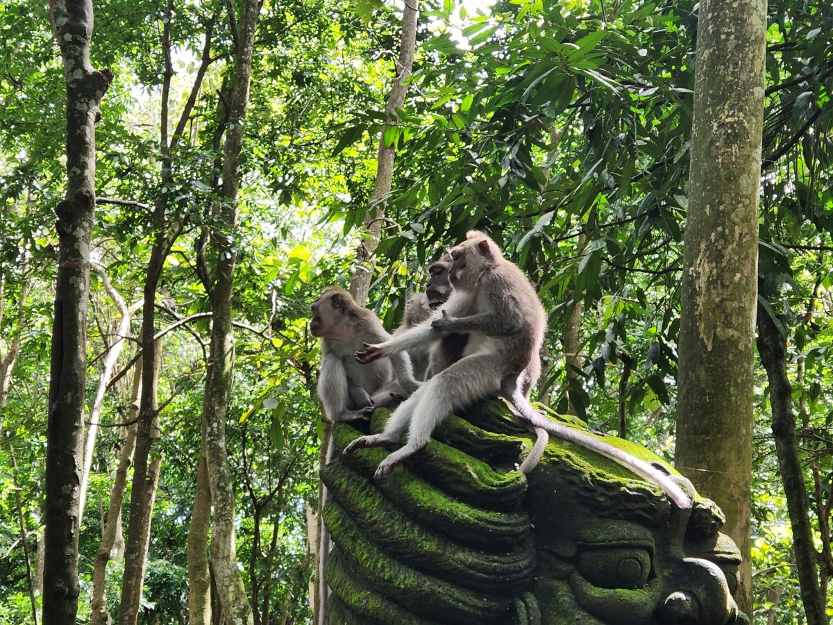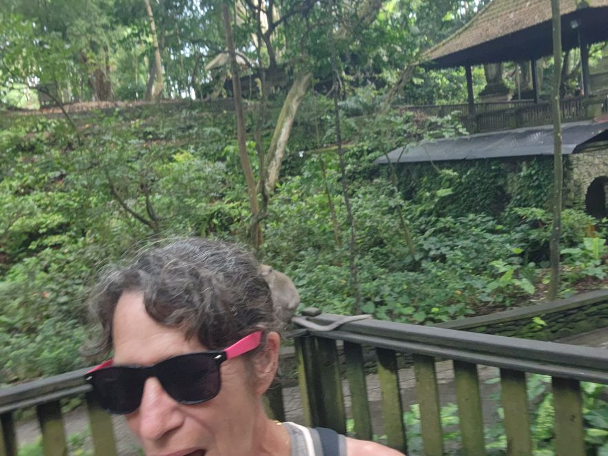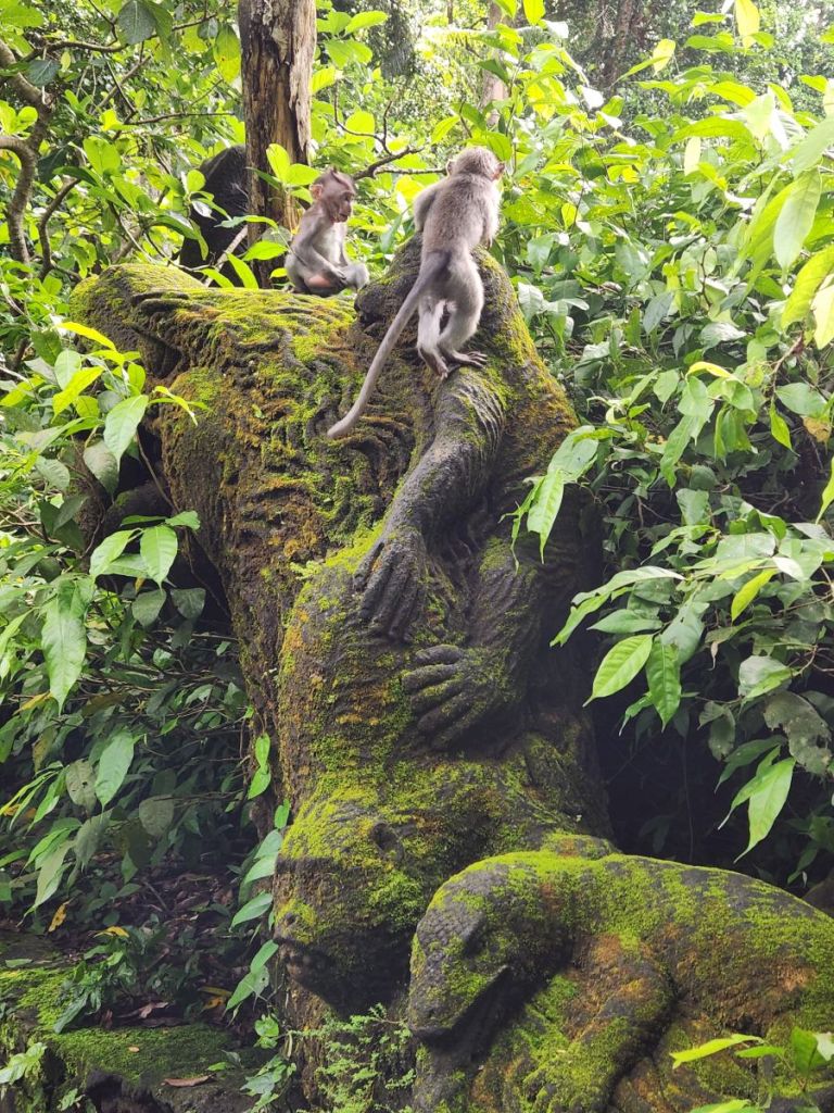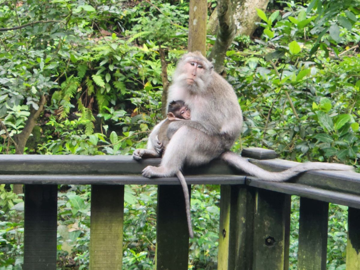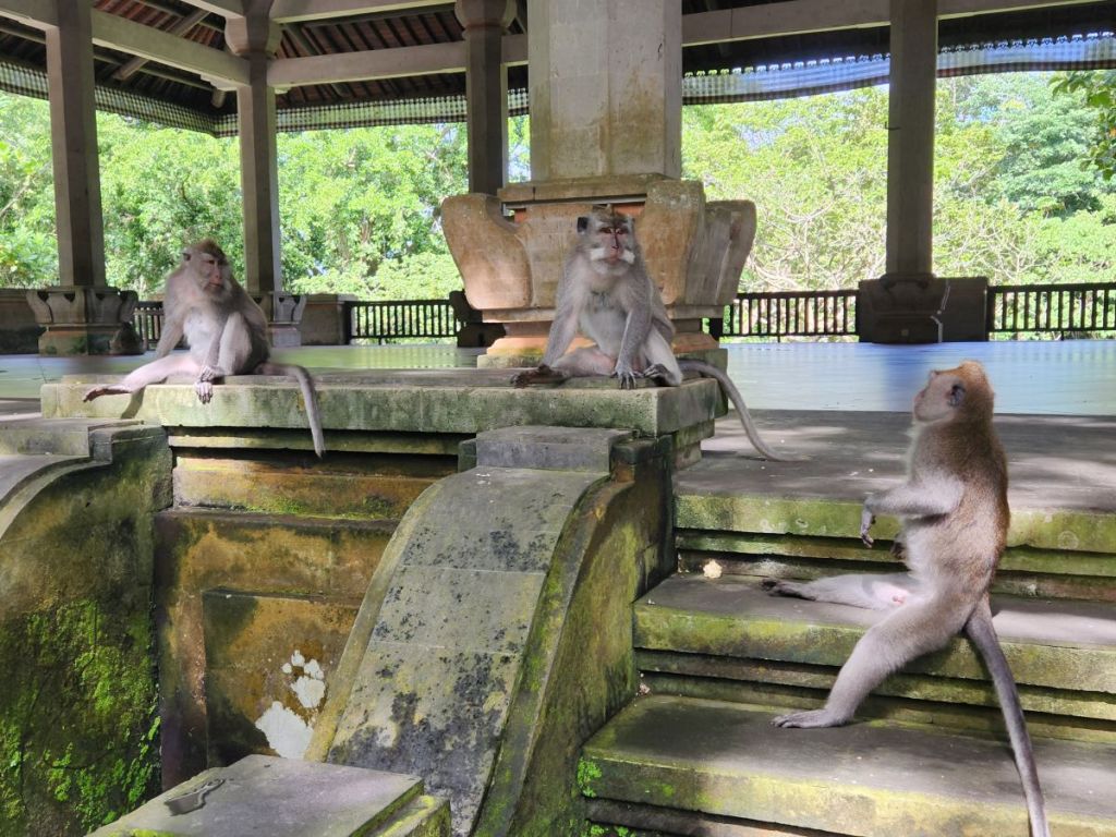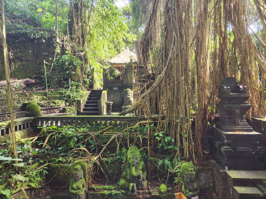 We have all morning to ourselves, as we are visiting Kadek’s family and home this afternoon, so we decide to go to the Monkey Forest again. Why not? We can go right when they open and hopefully avoid the crowds that were there when we visited over the weekend. It is lovely being out this early, actually. Not as much traffic or craziness on the streets and the walk to the forest is quite pleasant. We arrive before opening time and get in line behind 3 other people. Strategy successful! It will be great to have the park all to ourselves for a bit before the hoards drag themselves out of bed and swarm the place.