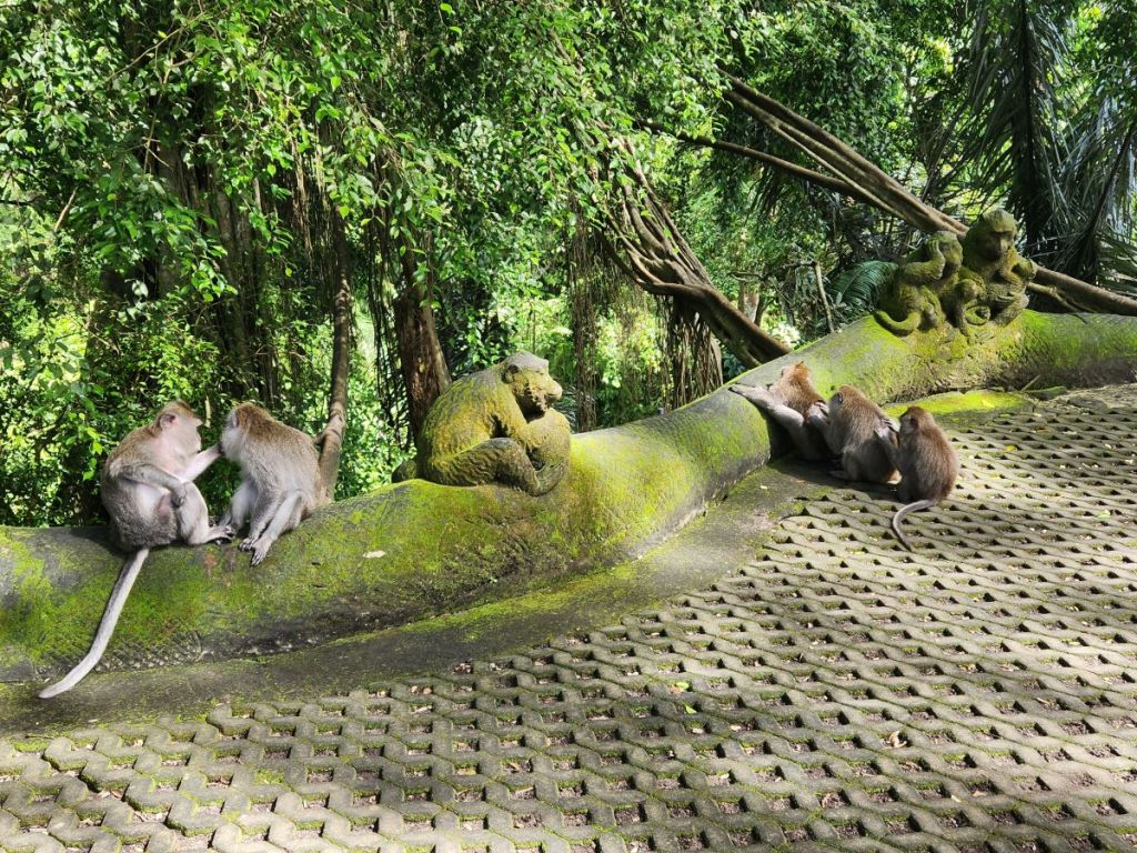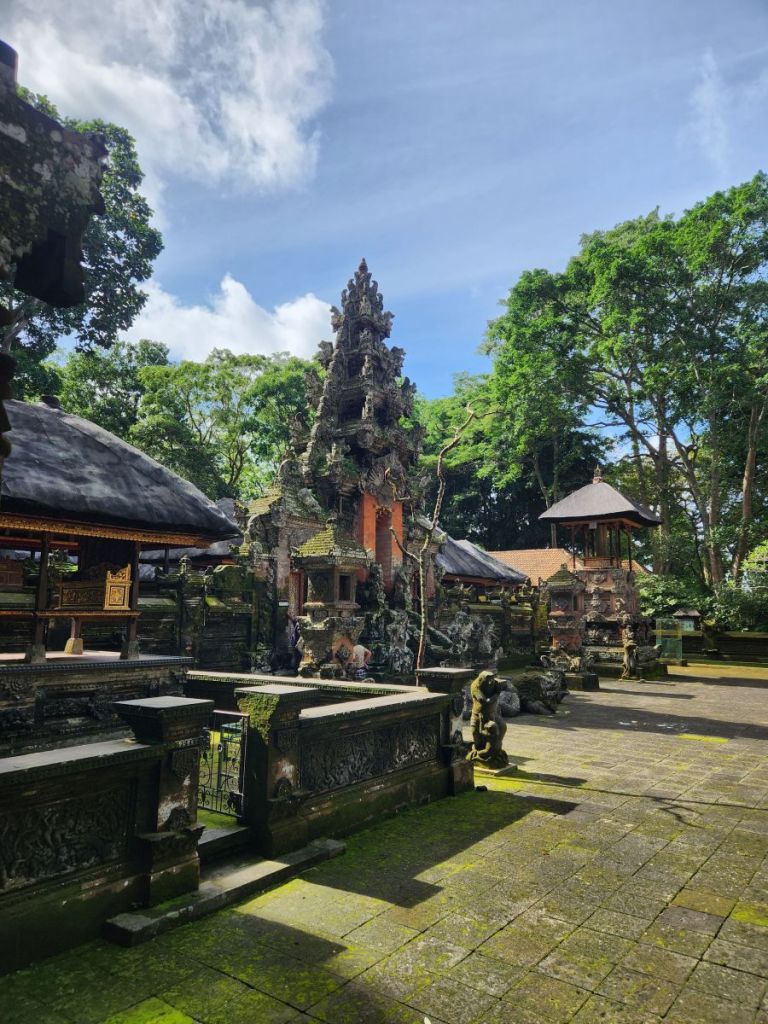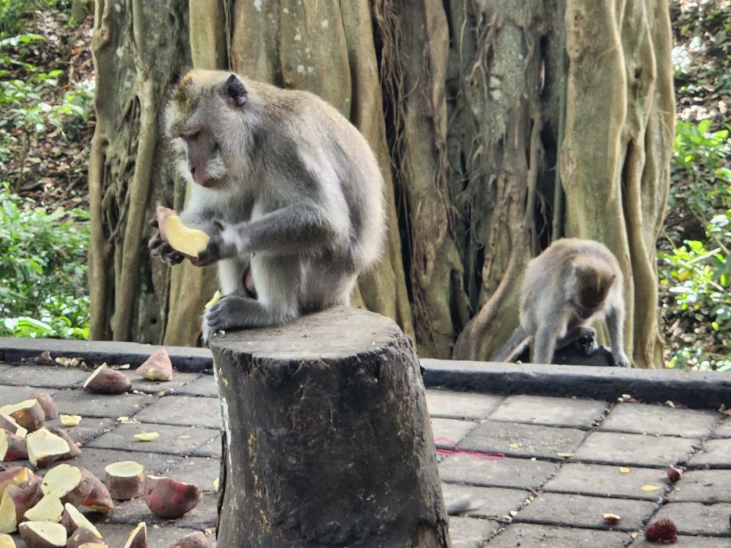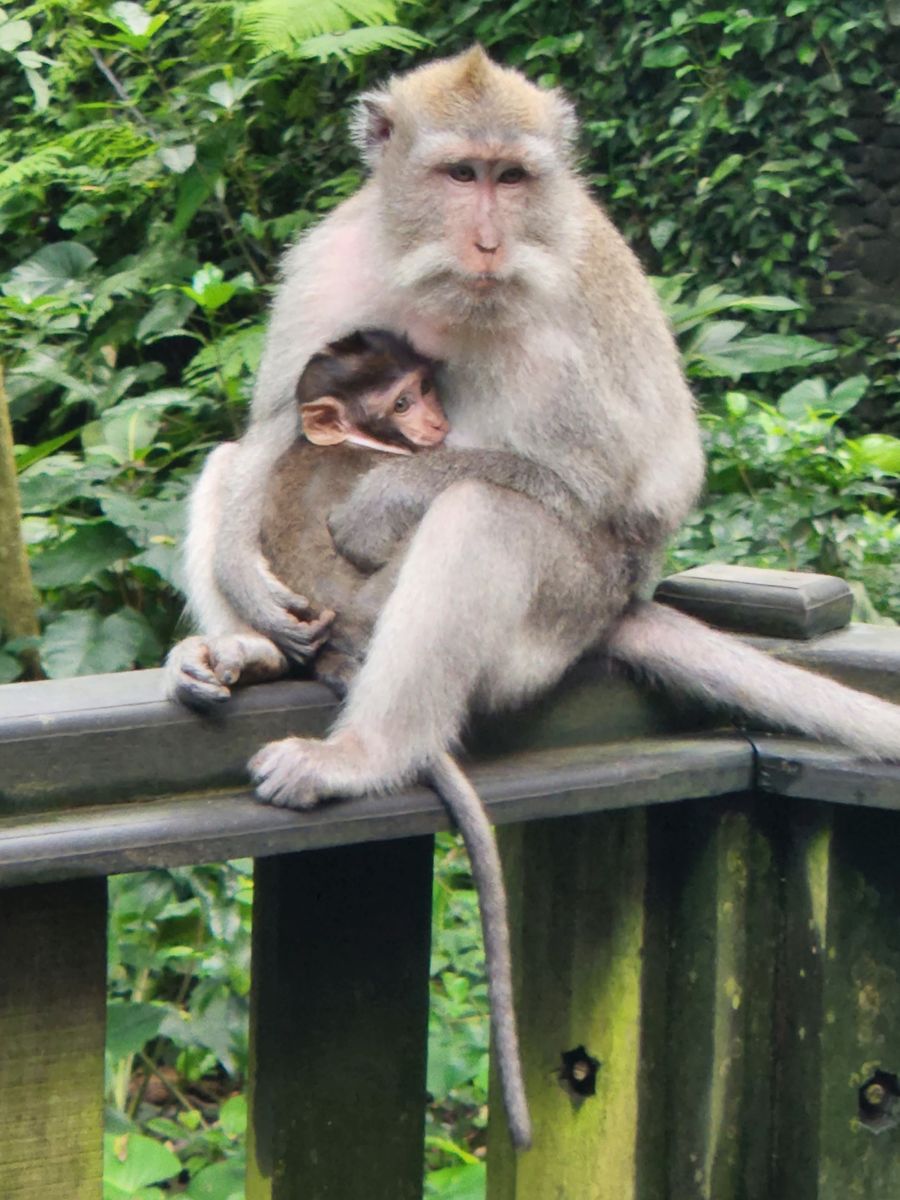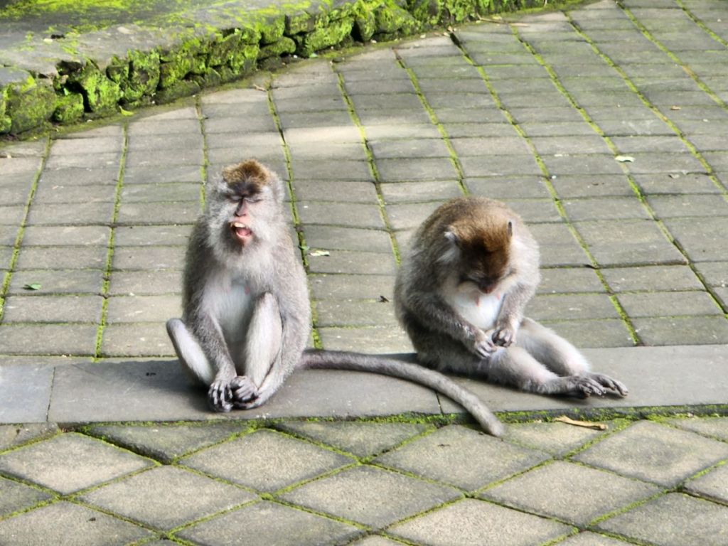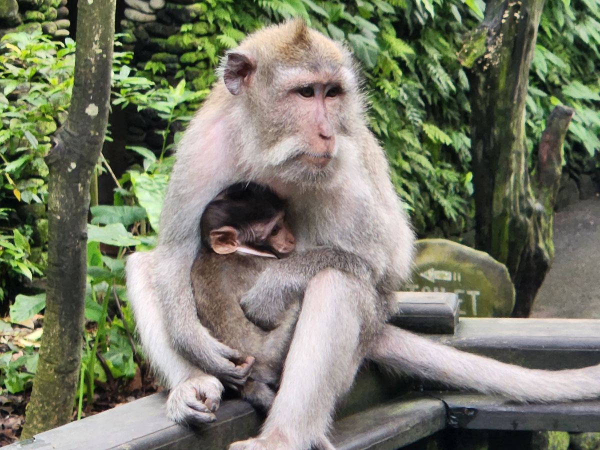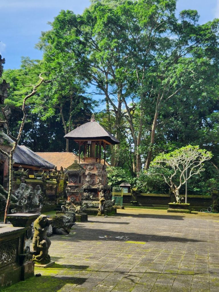 We have all morning to ourselves, as we are visiting Kadek’s family and home this afternoon, so we decide to go to the Monkey Forest again. Why not? We can go right when they open and hopefully avoid the crowds that were there when we visited over the weekend. It is lovely being out this early, actually. Not as much traffic or craziness on the streets and the walk to the forest is quite pleasant. We arrive before opening time and get in line behind 3 other people. Strategy successful! It will be great to have the park all to ourselves for a bit before the hoards drag themselves out of bed and swarm the place.