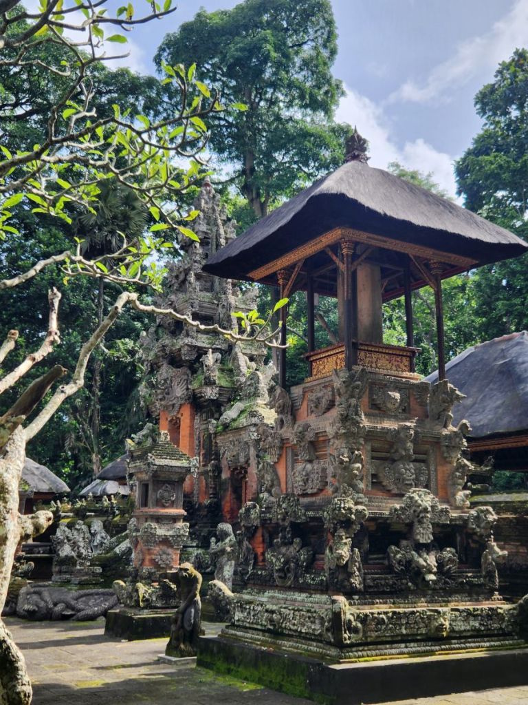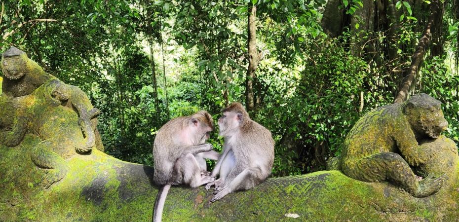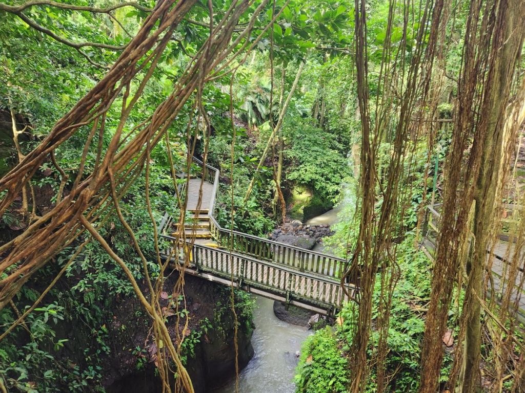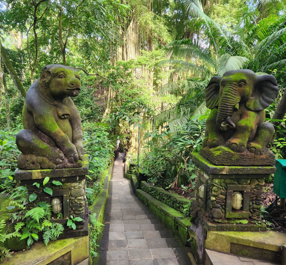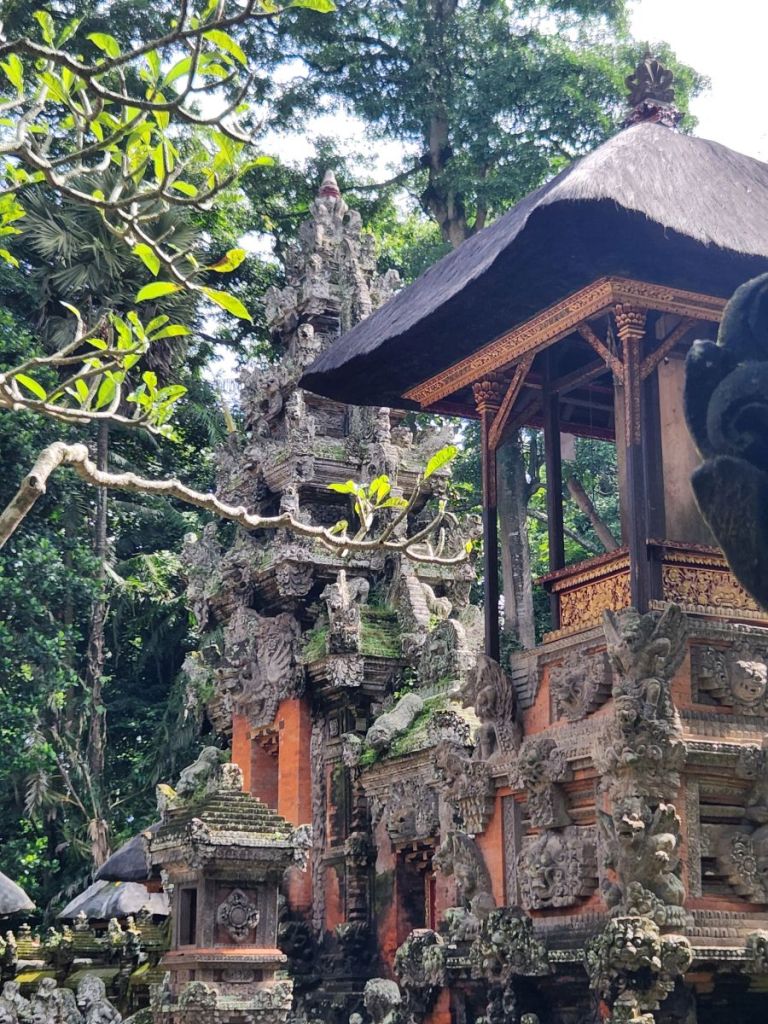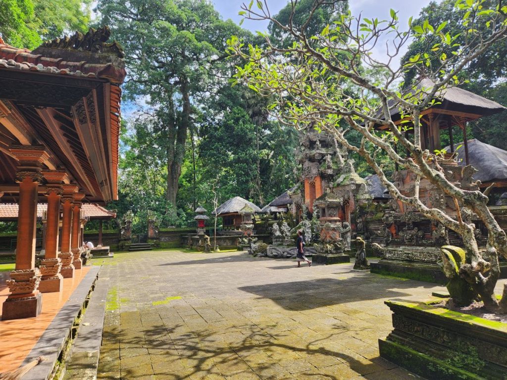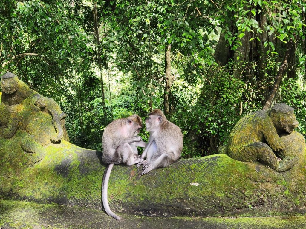 We have all morning to ourselves, as we are visiting Kadek’s family and home this afternoon, so we decide to go to the Monkey Forest again. Why not? We can go right when they open and hopefully avoid the crowds that were there when we visited over the weekend. It is lovely being out this early, actually. Not as much traffic or craziness on the streets and the walk to the forest is quite pleasant. We arrive before opening time and get in line behind 3 other people. Strategy successful! It will be great to have the park all to ourselves for a bit before the hoards drag themselves out of bed and swarm the place.