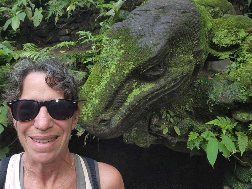 Passing the calm monkeys, we make our way down to the river, crossing the cool bridge and past the iguana statue. There are no monkeys here at all – but then there weren’t the other day we visited either. Apparently no group lives down here – or they are off elsewhere. Right now it is monkey-free and blissfully people free. Because we knew where we wanted to go, we are the first ones here – as the people in front of us have all stopped for the monkey sightings. They start to show up as we are done, and they are sort of following us – guess they figure we know what we are doing, which, well, we do!