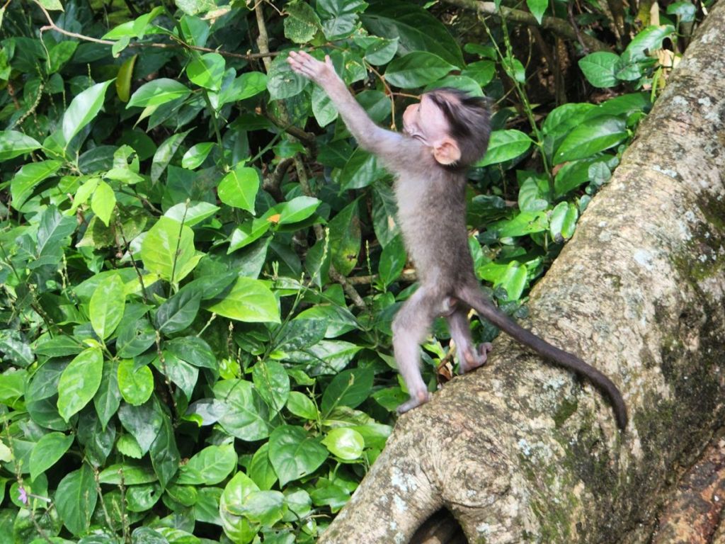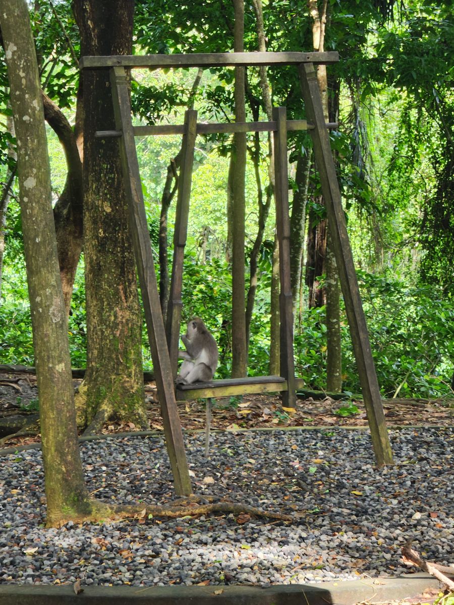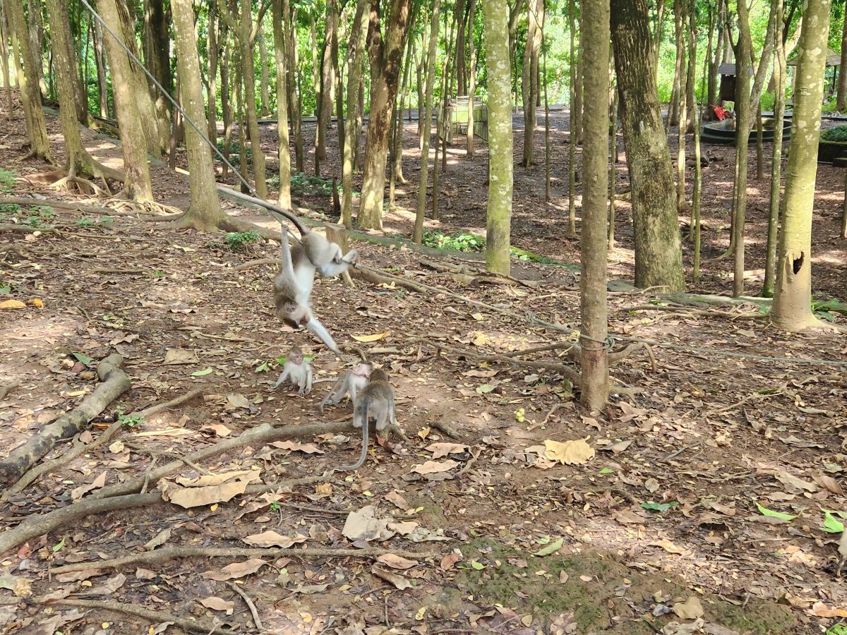 In this part of the forest there are all sorts of monkey toys too – swings and wires to climb on – which the monkey families put to great use. We spend a great deal of time here watching the families play. They are so adorable, with the little teeny monkeys jumping all over the place and all over each other.