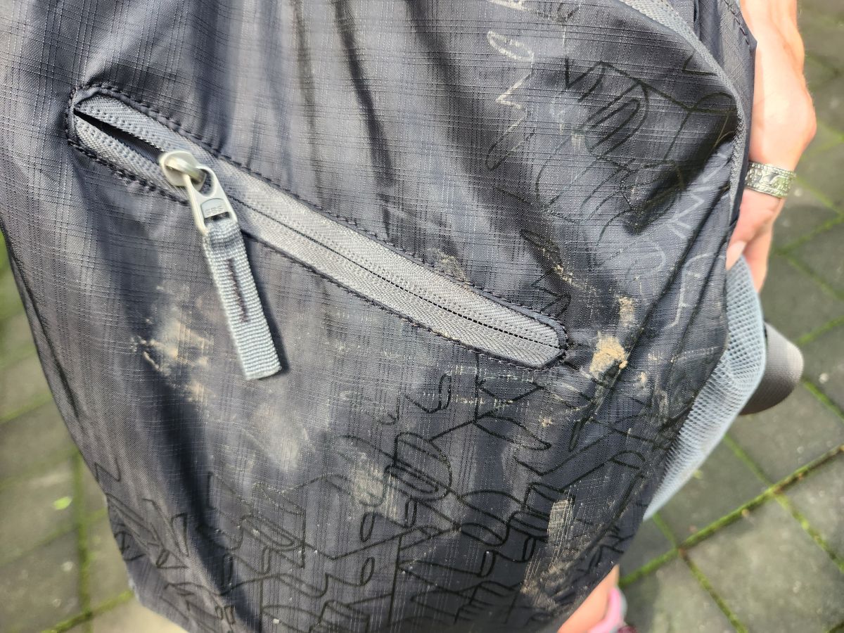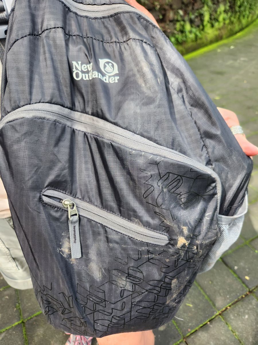 ….then make our way out of the park proper – stopping to store the stupid selfie-stick only to find I’ve been monkey schmooed! A lasting souvenir of our visit – at least until I wash off their little muddy pawprints when we get home!