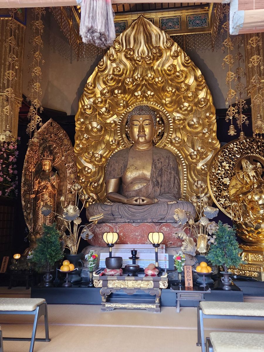 So, anyhow, we eventually make it to Kamakura and begin our soggy explorations at the Kotoku-in, the Great Buddha of Kamakura. This is a massive 11.4 meter tall 121 ton bronze Buddha, the second tallest bronze Buddha statue in Japan. Construction began in 1252 and took 10 years. Totally amazing. And because of the weather, there was hardly anyone there. It was fabulous. We even got to go inside the Buddha – which was wild. We could see how the statue was constructed with blocks and an explanation, even in English. Pretty cool.