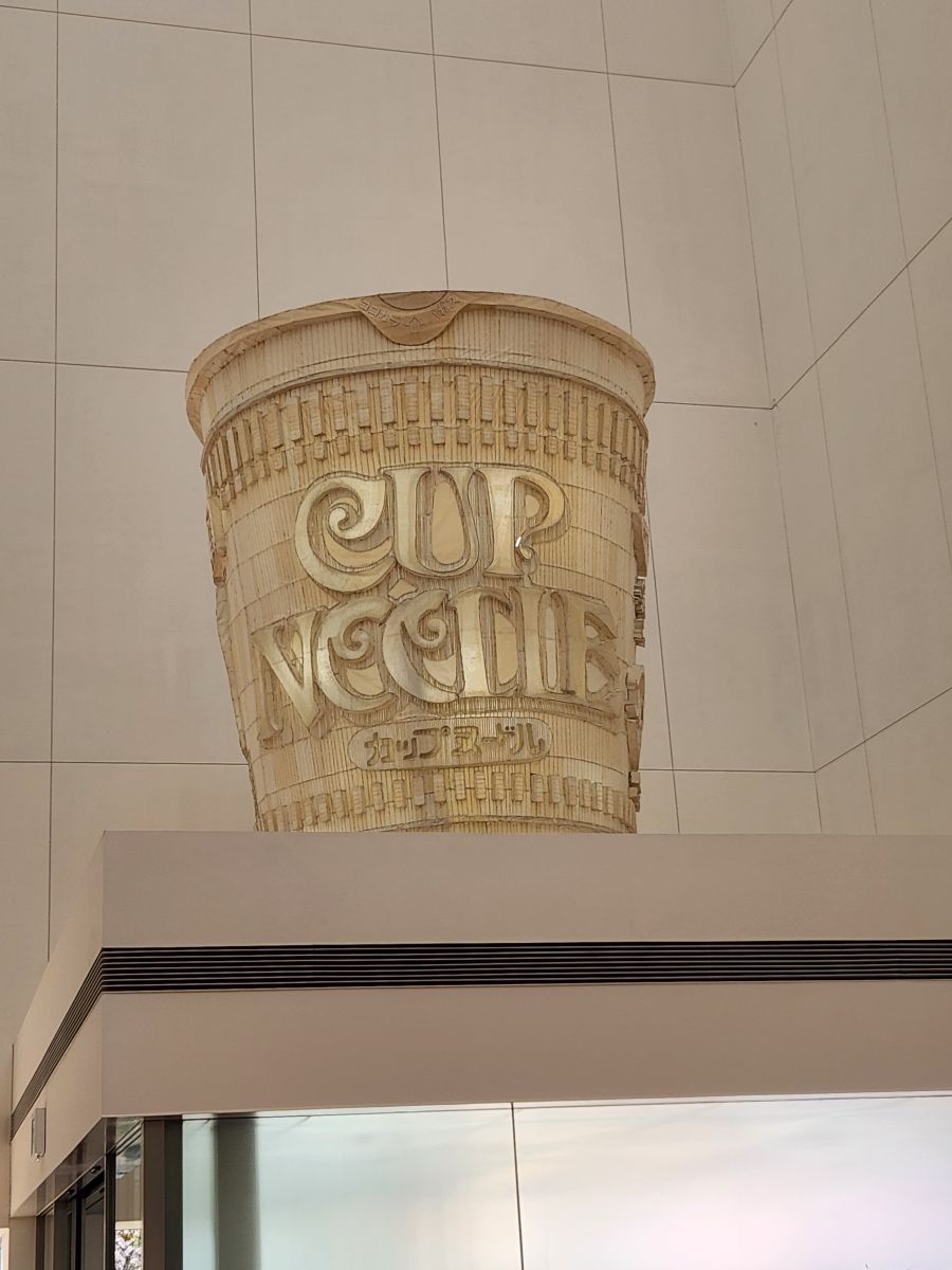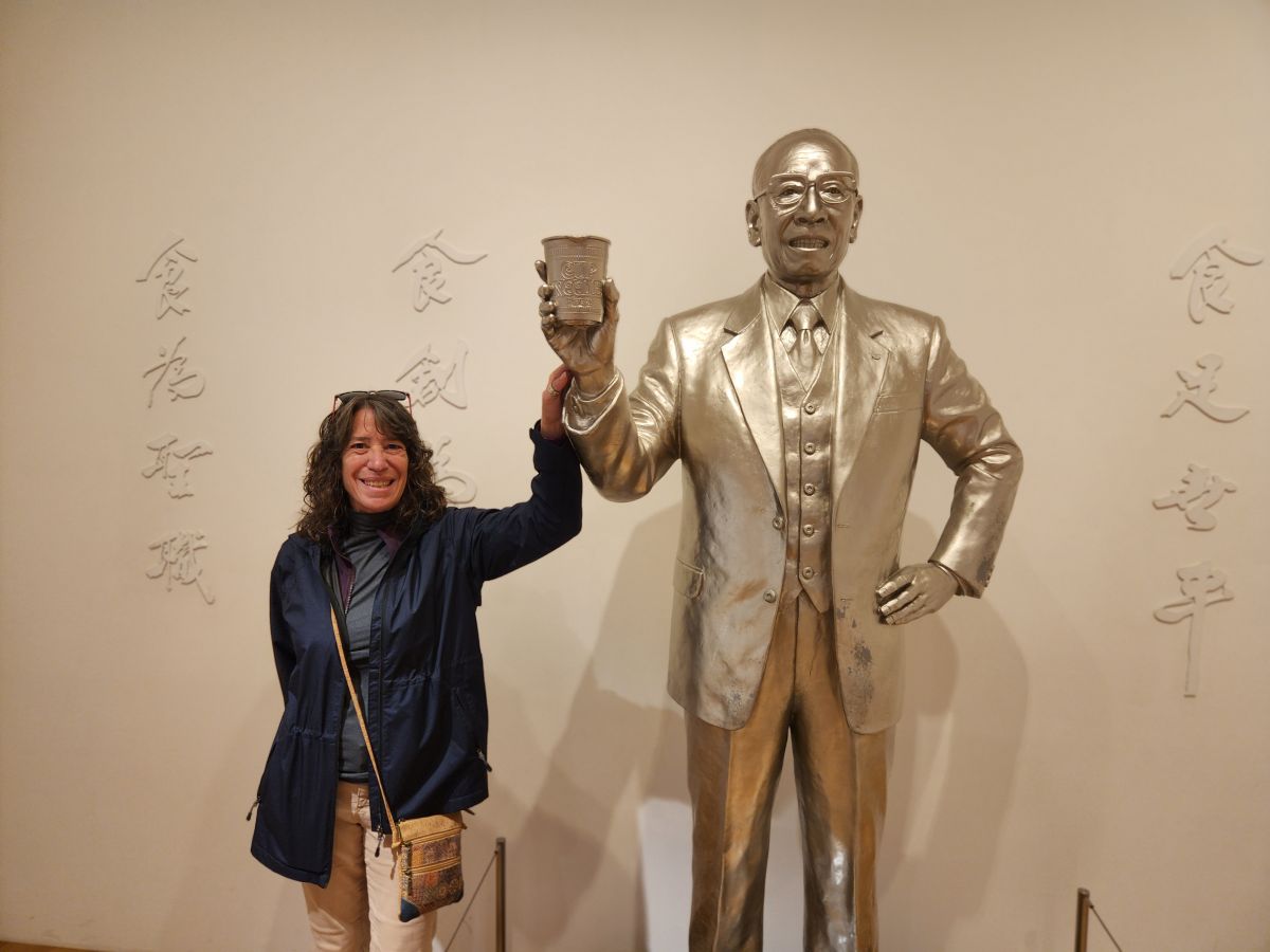 So now we have hours to waste before our alleged 3:20pm boarding time. We have saved the Cup of Noodles museum for just this occasion, knowing we’d have time to kill. It is supposed to be a fabulous homage to Cup of Noodles, so we figure when in Japan….Sadly it is a disappointment. While there are some great displays about the founder, Momofuku Ando who is called the Father of Instant Noodles, and how he created first Chicken Ramen in a little shed (which has been recreated) behind his house in 1958. He created CupNoodles in 1971 after he visited the US and saw customers breaking up the Ramen noodles from the packaging, putting them in a cup, pouring hot water over them and eating them right out of the cup. And while a really cool innovation story, there really isn’t much else to see really. As it turns out, it is about making your own cup of noodles, which cost extra. And was pretty booked up. Oh well, it was cheap enough.