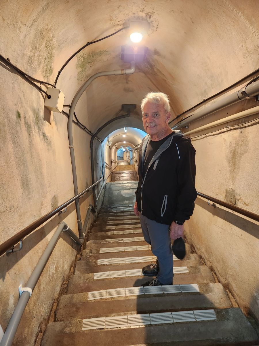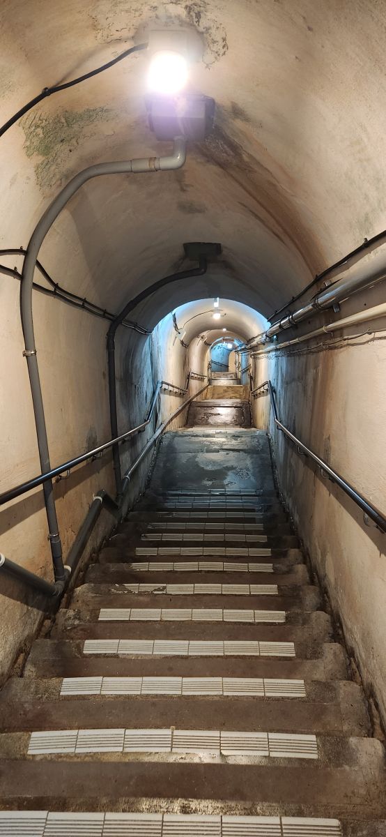 And that was our plan, to walk back into the city, but sweet taxi guy says he’ll wait for us. No way? Really? And for free – he’s not charging us. We were amazed – and of course thanked him profusely! He showed us where he’d be waiting – and off we went, up into the gardens surrounding the tunnels, meandering past the Navy Veteran Memorial Tower and along the path overlooking the city. By the time we make the circuit of the park pathways, the Headquarters Bunker (or trench as the literal translation) has opened and we begin our explorations.