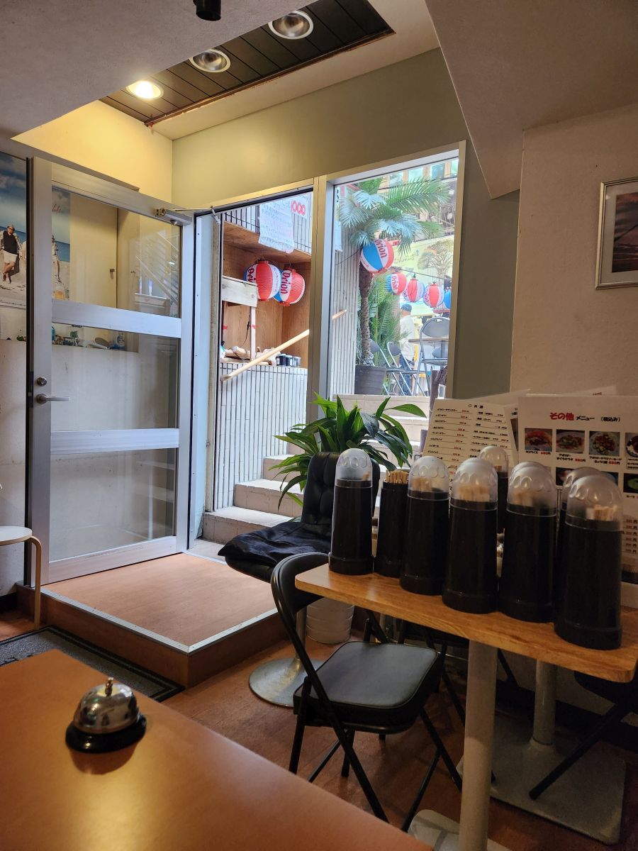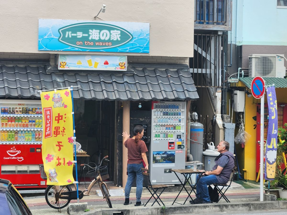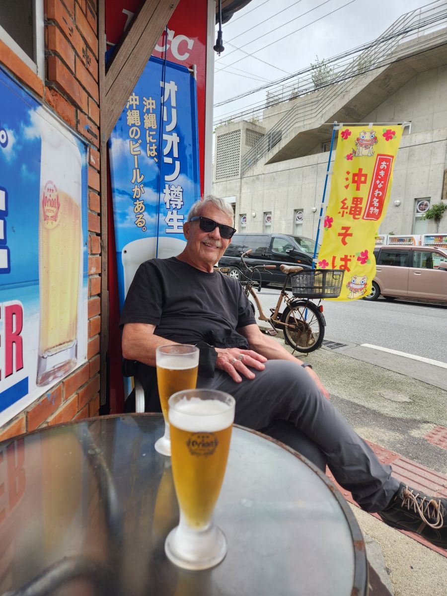 Now we turn our sights back to the ship – with a diversion to the Naminoue Shrine. Along the way, we are looking for someplace to stop for an afternoon beverage – which let me tell you – are few and far between here. Most bars open at 9pm and stay open all night, but afternoon drinking? Not a thing here. Or at least not a very popular thing. We actually end up stumbling upon the On The Waves restaurant and bar, about a block from the shrine. This little place is just a typical divey sort of bar/restaurant here in Okinawa. Tiny inside with a bar area that wraps around the kitchen space. The owner has all sorts of little crafts and odd things sitting around (like these tiny chairs made from beer caps) as well as food and Orion, of course, beer. We’re in!