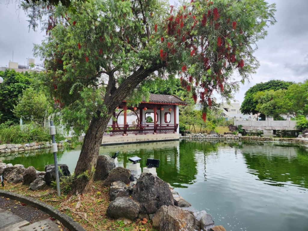 Then it is on to the park across the street – up the wooden staircase to the lush forested area with great views and the ever present tables and benches carved to look like trees (they are everywhere here, apparently).