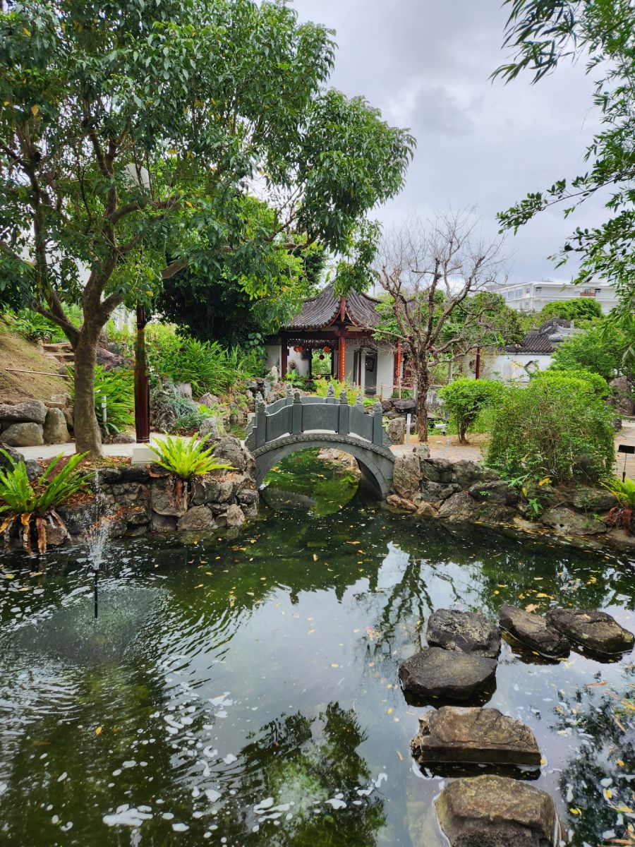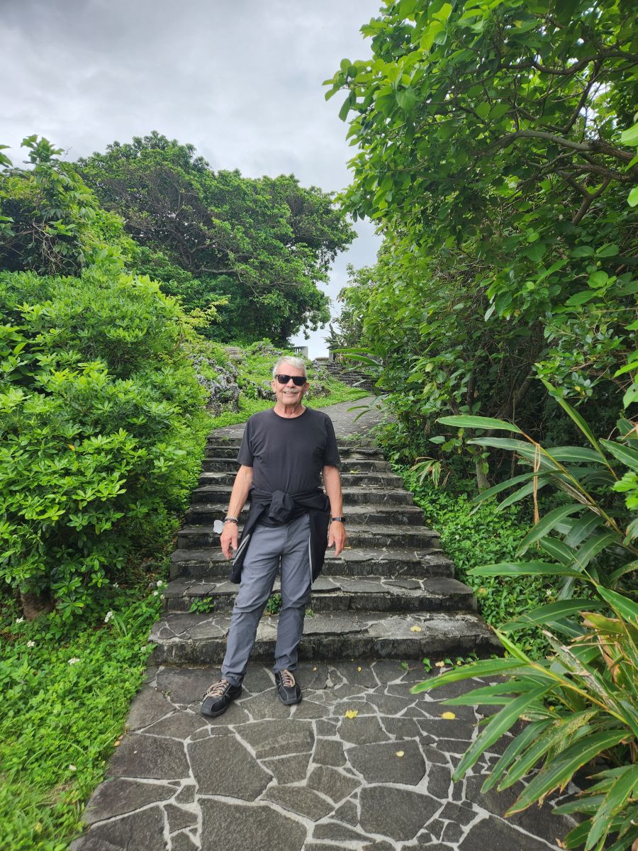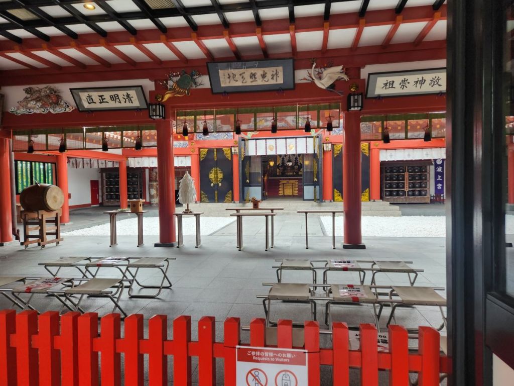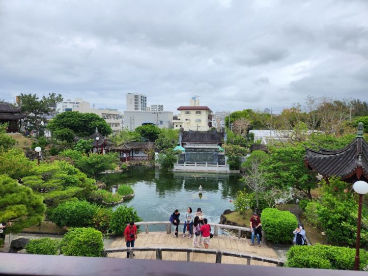 The park is lovely, and a great place to walk, but we have our sights set on the Naminoue Shrine, which is luckily at the bottom of the park. A quick little walk and we are inside the shrine area which is the sacred area to offer prayers to Nirai Kanai (world of Gods) and each boat going in and out of the commerce base of Naha looked up to the shrine on top of this high cliff and prayed for a safe journey. It is quite lovely – and I did sneak a picture (shame on me!!) just to get the feel of the place.