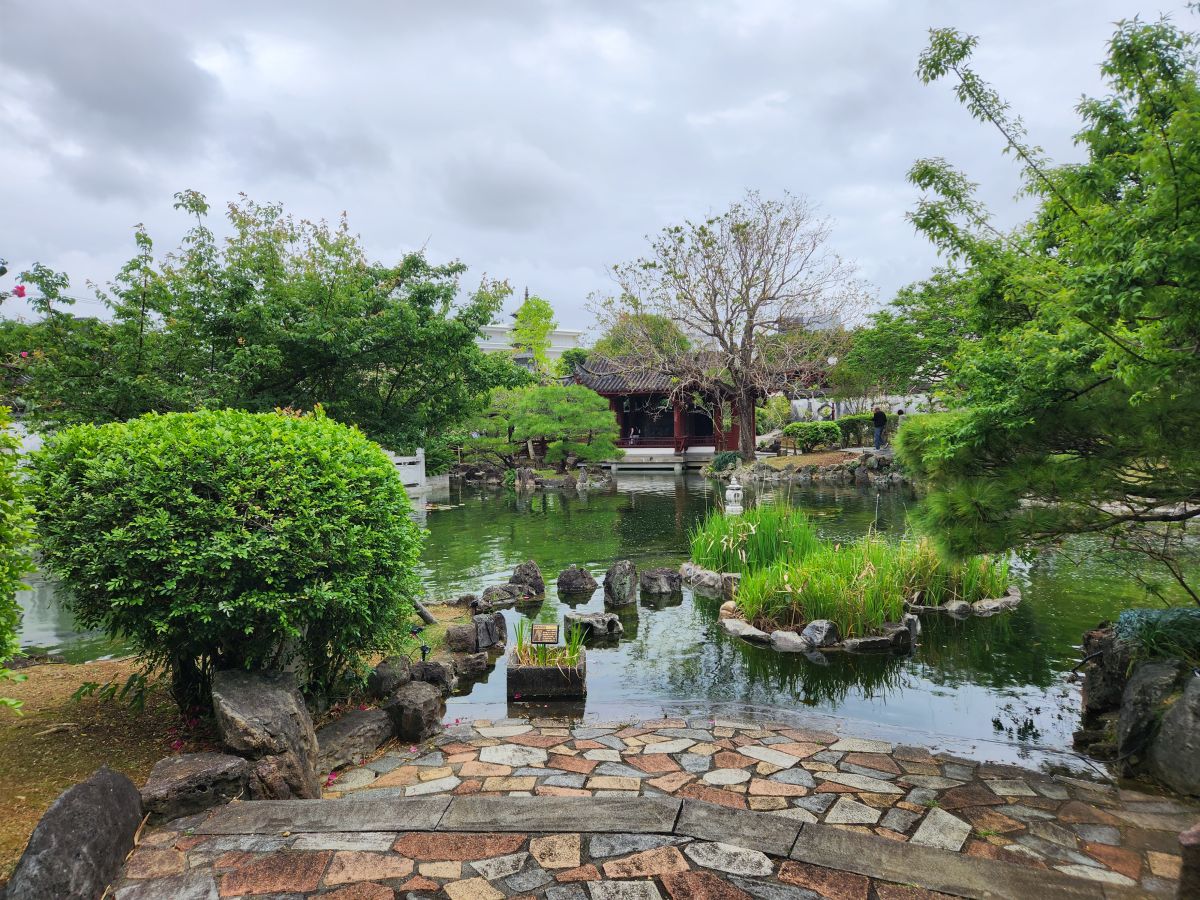 Then we go across the street to the Fukushūen Garden, this fabulous Japanese garden with gorgeous ponds and tall tower structures and traditional temples and pagodas – right in the middle of the city! Beautiful and serene.