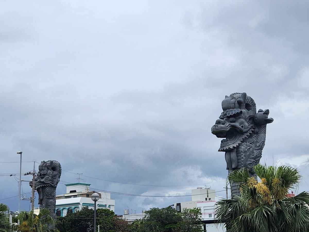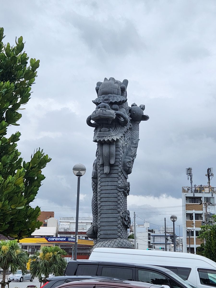Walking down toward the main highway and intersection to the port drive, we pass the huge Shisa that guard the city – looking regal and frightening all the same. I love those Shisa and am so happy we have a pair all for ourselves!