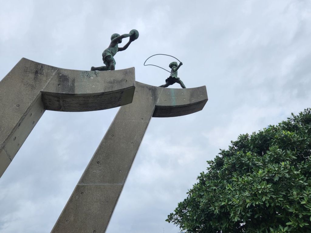Then it is back down the waterfront, passing the statues of the little boy and girl playing ball that I loved – and took a picture of – when we left this morning in the rain…